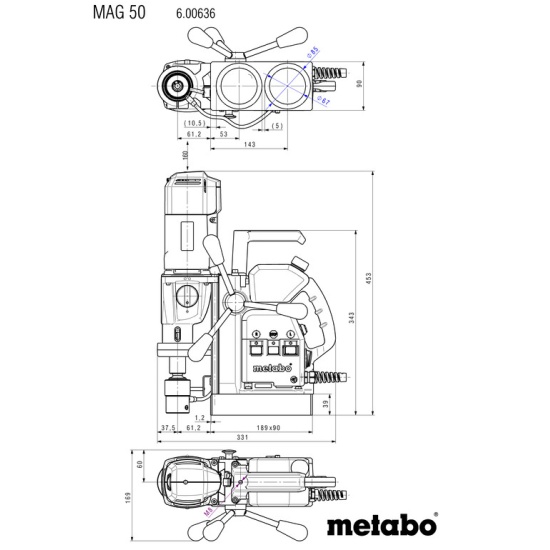 Дрель на магнитной стойке Metabo MAG 50, 1.2кВт, МК2/W19 (600636500)ОписаниеБольшой ход, благодаря которому подходит для применения корончатых, спиральных сверл и зенкеровМагнитное основание с большим усилием притяжения позволяет работать на вертикальных поверхностях и над головойНадежный двигатель Metabo Marathon с местом для размещения кабеля внутри гарантирует длительный срок службыПолноволновая
