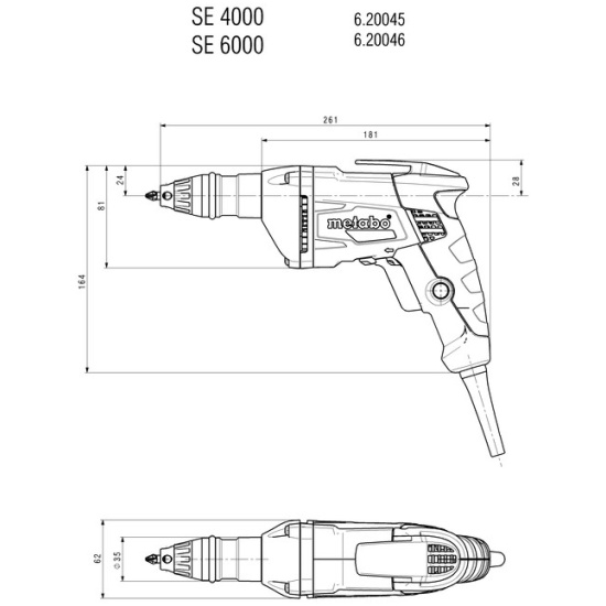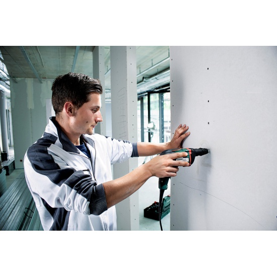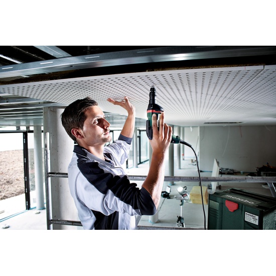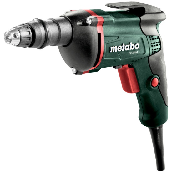 Шуруповерт для гипсокартона Metabo SE 6000 (620046000)ОписаниеСпециализированный инструмент для работы с гипсокартоном: высокие обороты гарантируют быстрое выполнение работКомпактная и легкая конструкция позволяет держать инструмент одной рукойТочность вворачивания шурупов за счет тонкой регулировки ограничителя глубины и малошумной кулачковой муфтыПолностью съемный упор глубины для работы с визуальным контролемЭлектроника Vario (V) – управление числом оборотов в соответствии со свойствами материала
