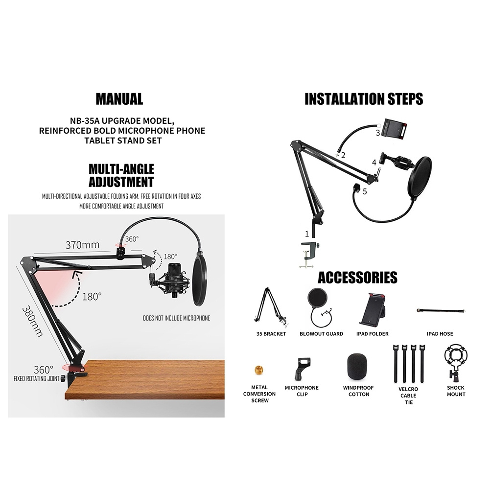 Микрофон Настольная подставка для микрофона Подставка с ножничным рычагом и винтом 3 / 8-5 / 8