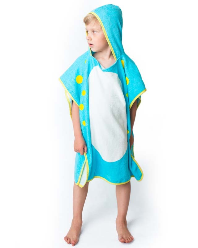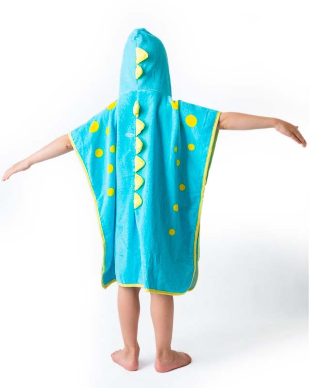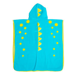 Полотенце пончо детское с капюшоном Динозаврик, махровая ткань, хлопок, размер 70 х 140 см, бирюзовый