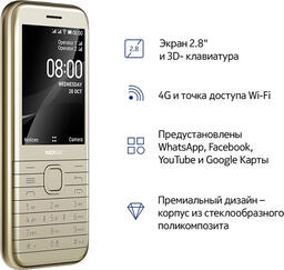 Мобильный телефон Nokia 8000 4G, золотой