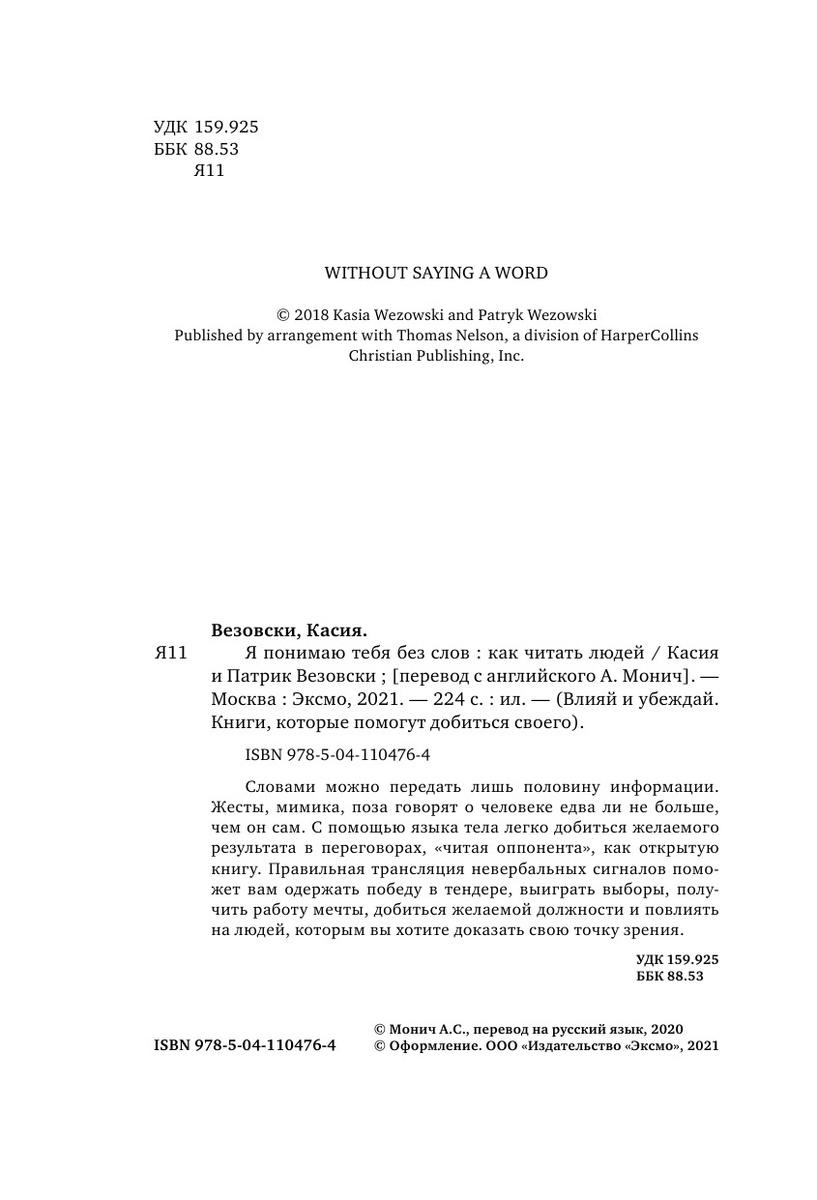 Я понимаю тебя без слов. Как читать людей по жестам и мимике | Везовски Касия, Везовски Патрик