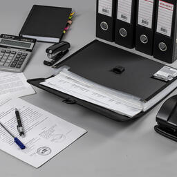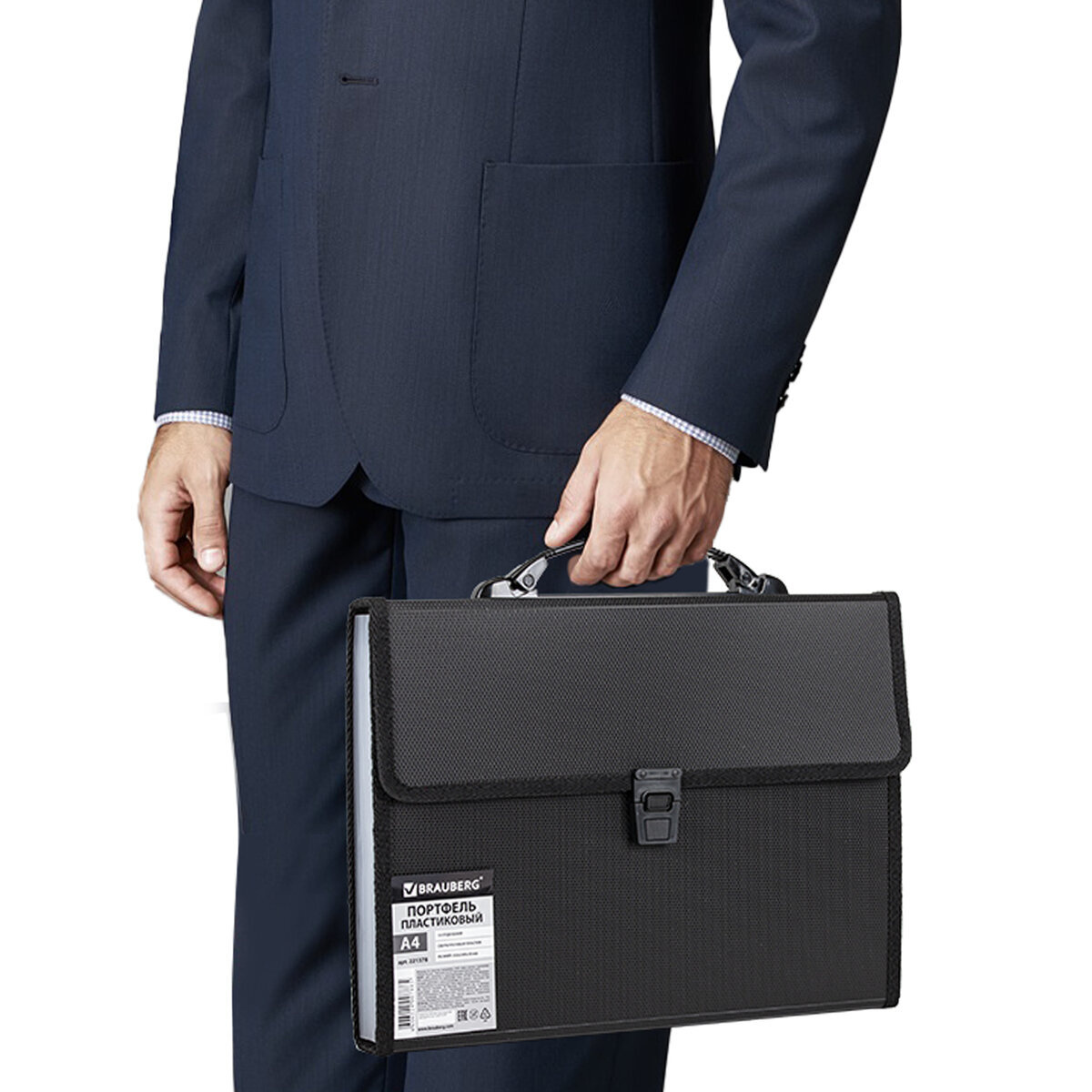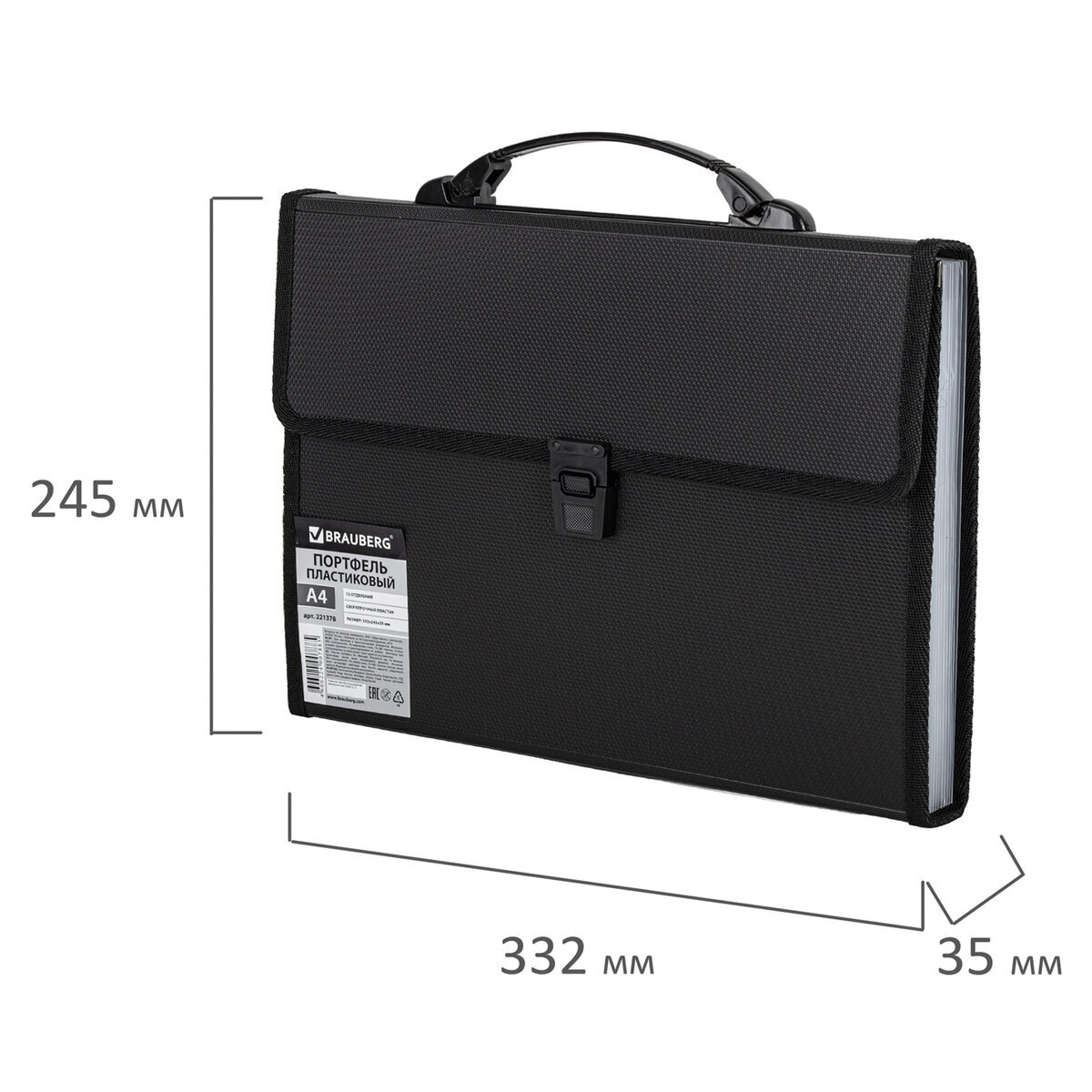 Папка/сумка/портфель для документов канцелярская с ручками пластиковая формата А4 (332х245х35мм), 13 отделений, черная, Brauberg 221378
