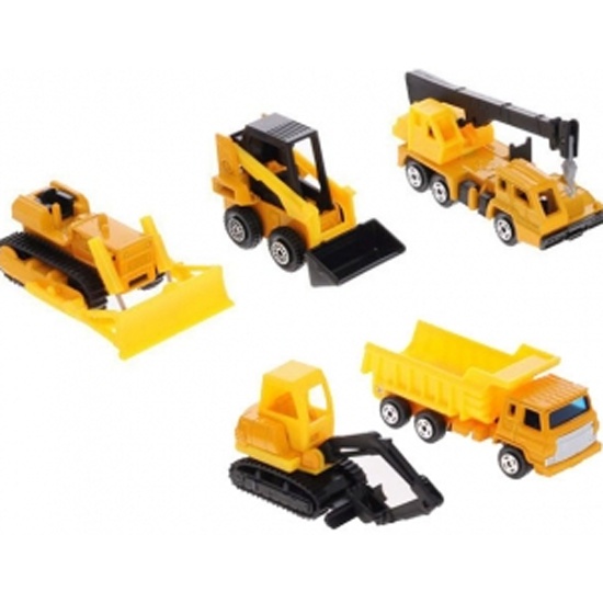 Игровой набор Welly 97506R-1 Строительная техникаБлагодаря игровому набору от компании «Welly» Ваш ребенок сможет познакомиться с разными видами строительной техники, узнать много интересного о ее назначении и принципах работы, расширит кругозор и придумает много новых игровых сюжетов на строительной площадке игрушечного города.Особенности:Игровой набор представлен 5 транспортными средствами для проведения строительных работ: грузовика, строительного крана, трактора с ковшом и другими.Подвижные колеса и кузов тщательно проработаны. Данный набор может прекрасно пополнить коллекцию строительной техники.Кузов машин имеет насыщенный желтый цвет, характерный строительным машинам.Колеса у автомобилей – подвижные, их можно катать по игровой поверхности развивая моторные навыки.Кроме того каждая модель обладает подвижным элементом, позволяющим имитировать его работу и делает игру более правдоподобной.С машинками юный ценитель строительной техники придумает много захватывающих сюжетов для игр, развивая воображение, моторику и координацию движений.Изделие выполнено из качественных гипоаллергенных материалов, сертифицированных для производства детских товаров.