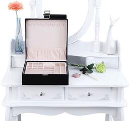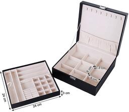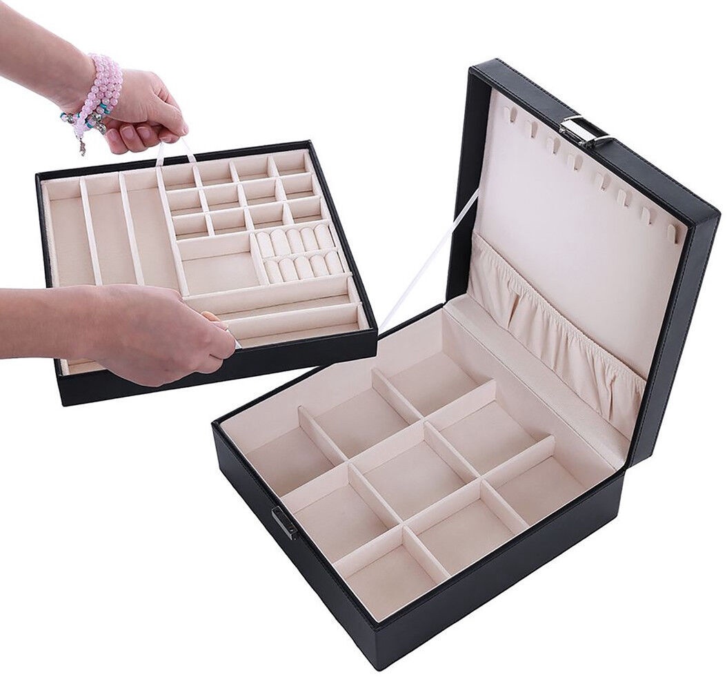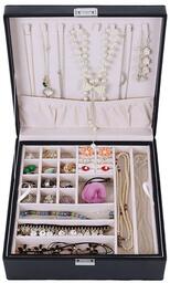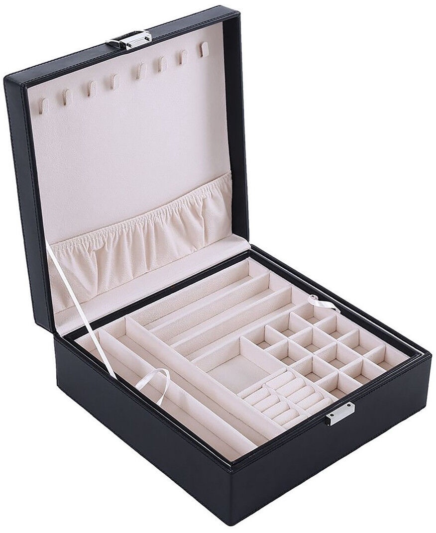 Papildoma informacijaIlgis: 26 cm, Vidinė spalva: Rožinė. Vidinė medžiaga: Aksomas. Karoliams ir laikrodžiams yra devyni skyriai. Komplekte yra nuimamas įdėklas apyrankėms, auskarams ir žiedams