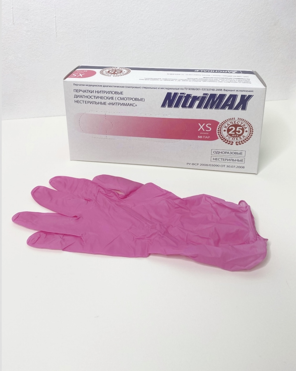 Перчатки медицинские NitriMax, 100 (50) пар, XS, Нитрил, розовый