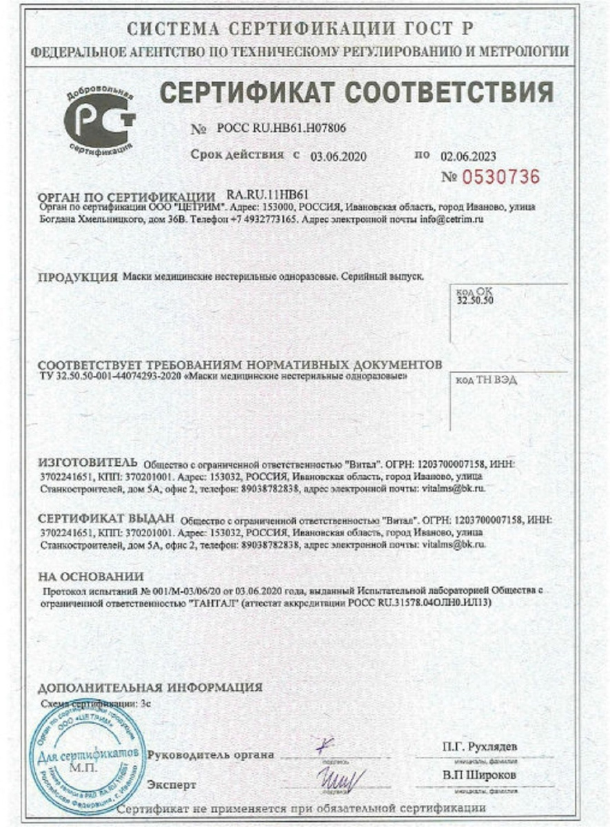 Маска медицинская VITAL, 10 шт