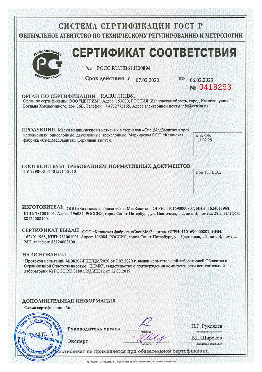 Маска гигиеническая Казанская спецмедзащита, 100 шт