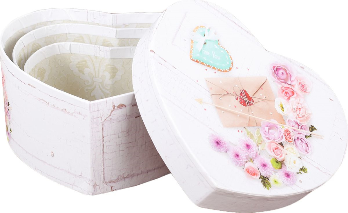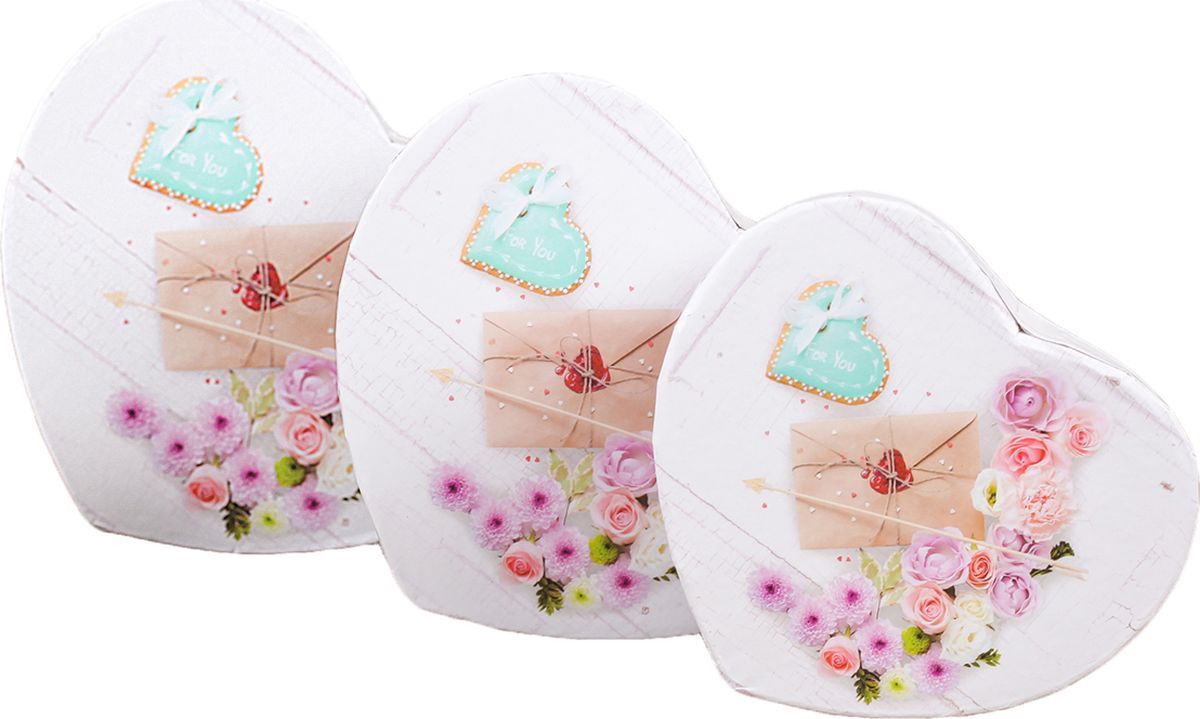 Подарочная упаковка "Сердце", разноцветный, 3 шт
