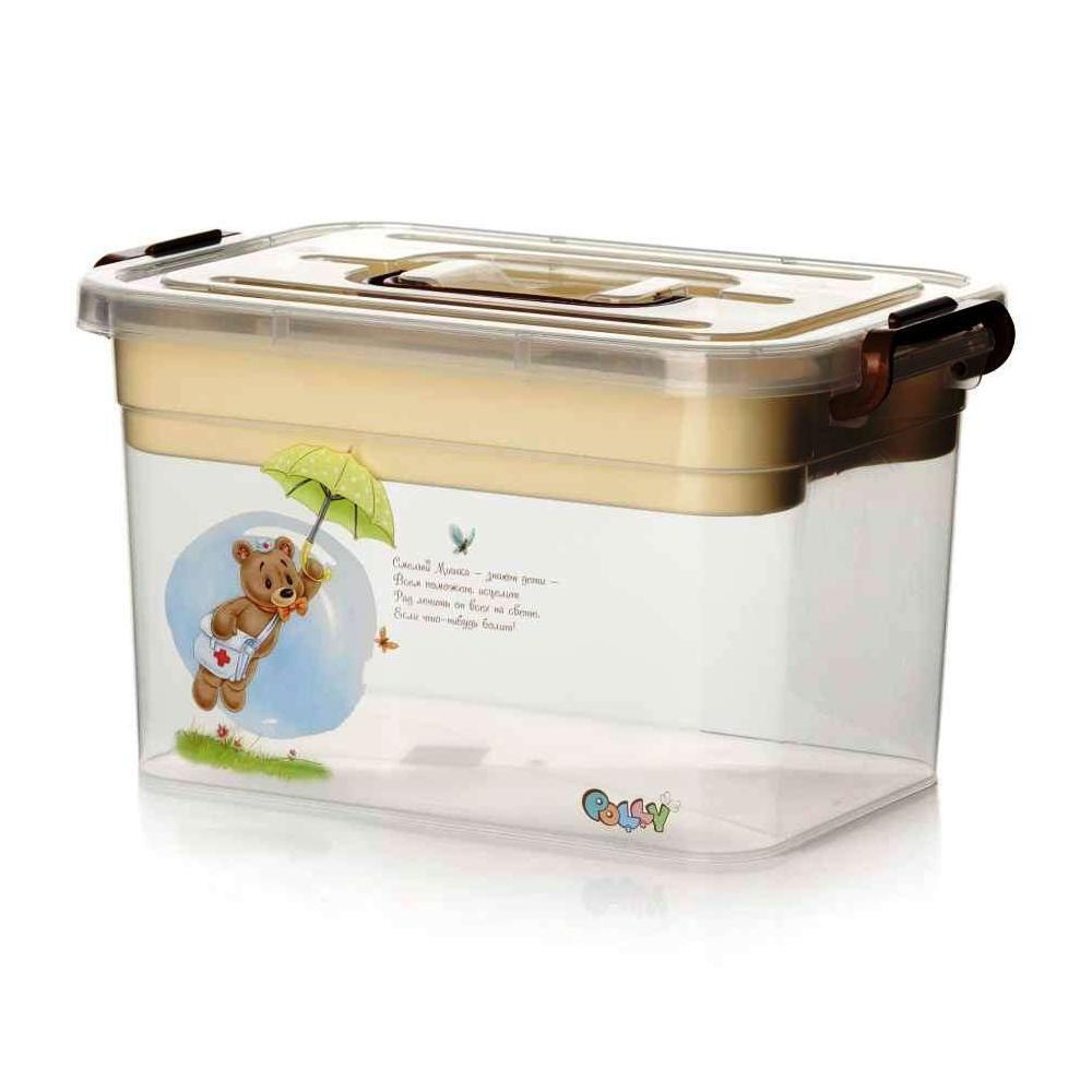 - Комплектация: Контейнер для детской аптечки серии Polly с вкладышем, объемом 6,5 литров. Удобный контейнер с вкладышем для хранения лекарств и средств гигиены для малыша. Декорирован детским рисунком, нанесенным при помощи технологии IML., не стирается, не тускнеет. Вкладыш позволяет удобно организовать пространство внутри и хранить содержимое в порядке. Прозрачный корпус позволяет видеть содержимое. Размер: 31 х 20 х 18 см. Вес: 394 гр. Материал: полипропилен. Срок годности не ограничен. Изготовитель: АО «Полимербыт», Россия, Москва.