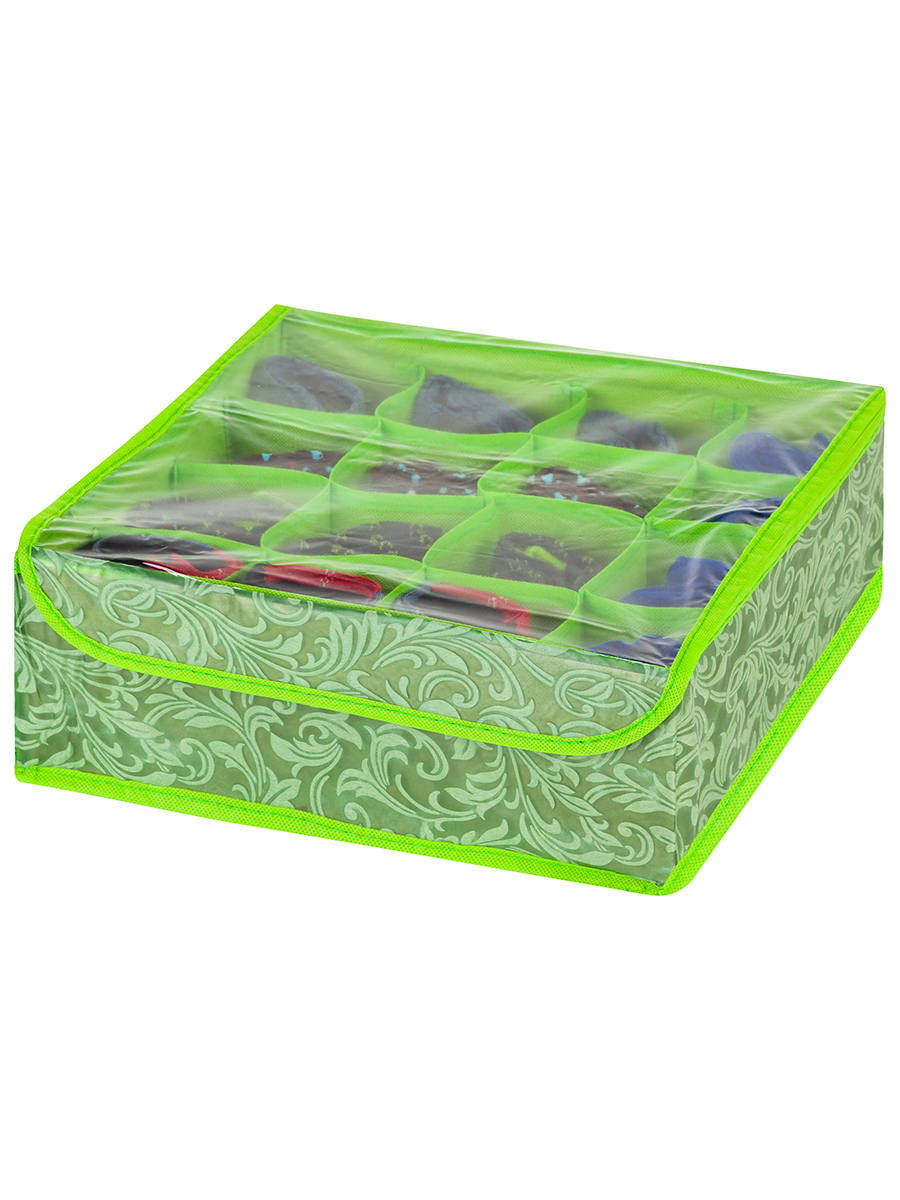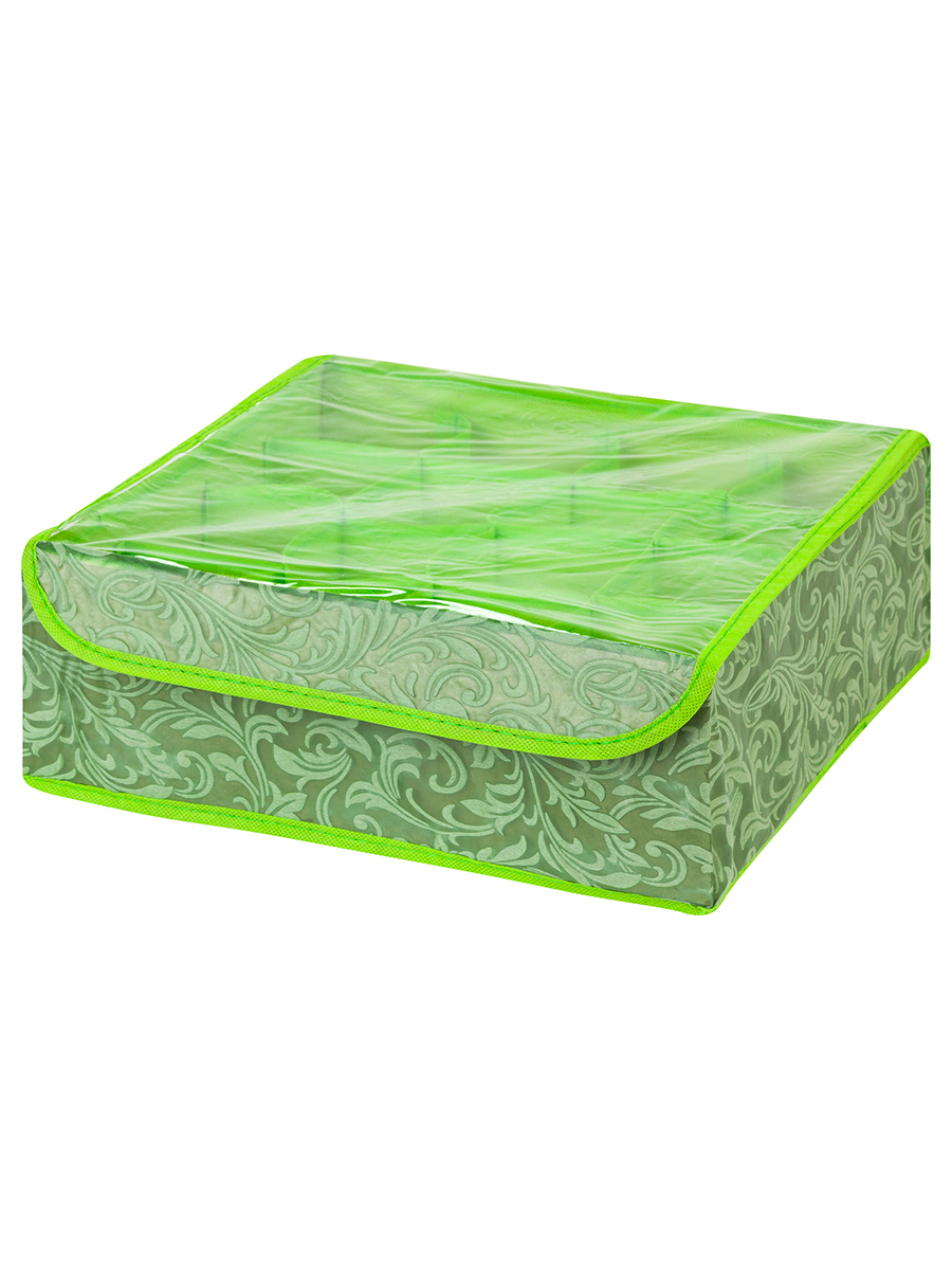 Кофр д/нижнего белья и носков 32х32х12 см EL Casa "Королевский узор" зеленый,16 секций