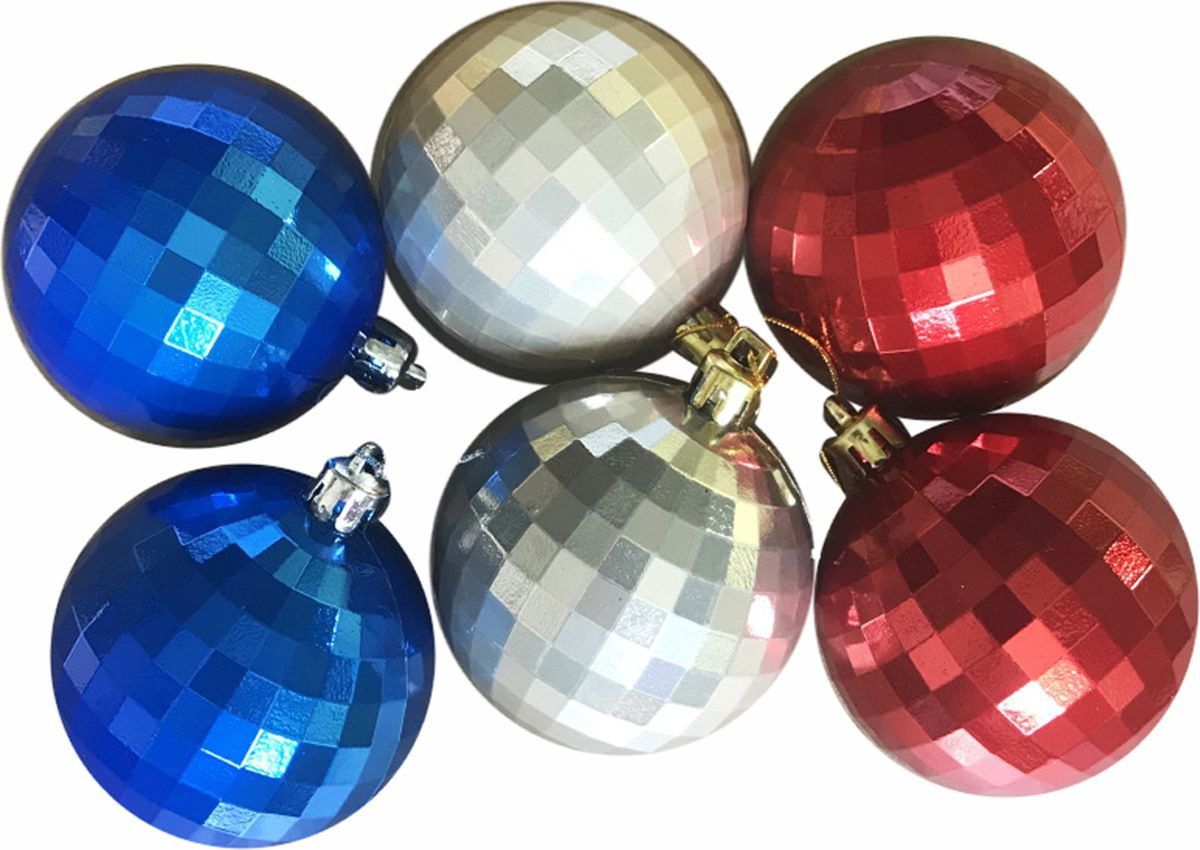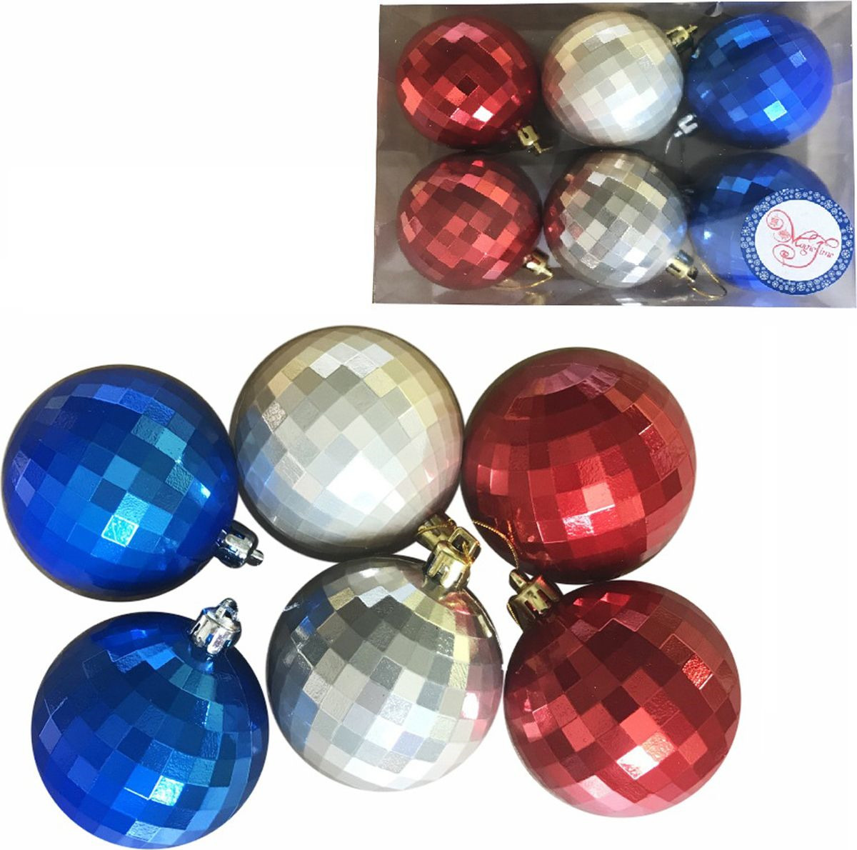 Набор новогодних подвесных украшений Magic Time "Ассорти", цвет: красный, молочный, синий, диаметр 6 см, 6 шт