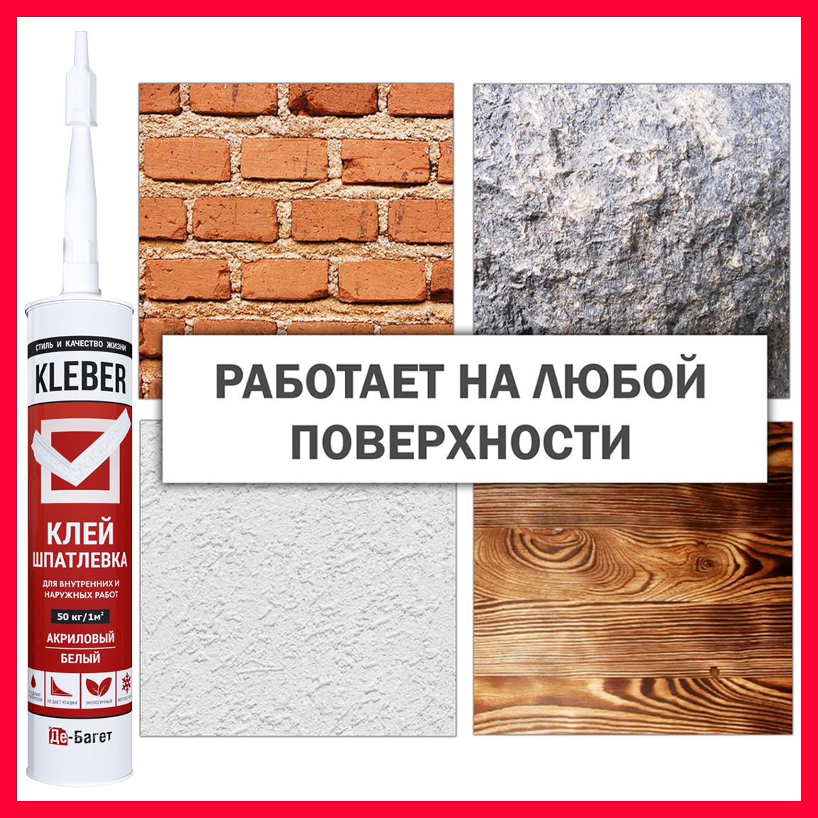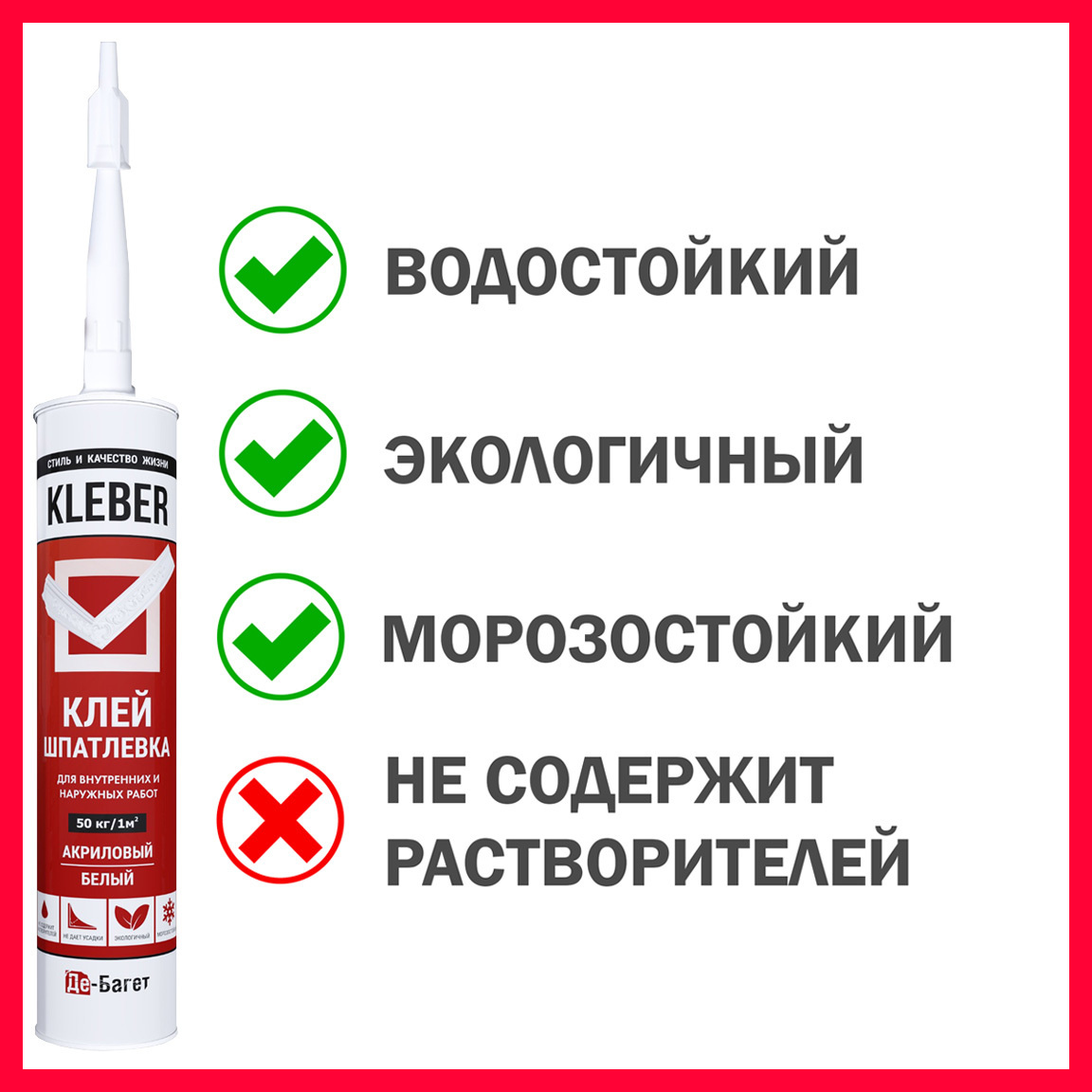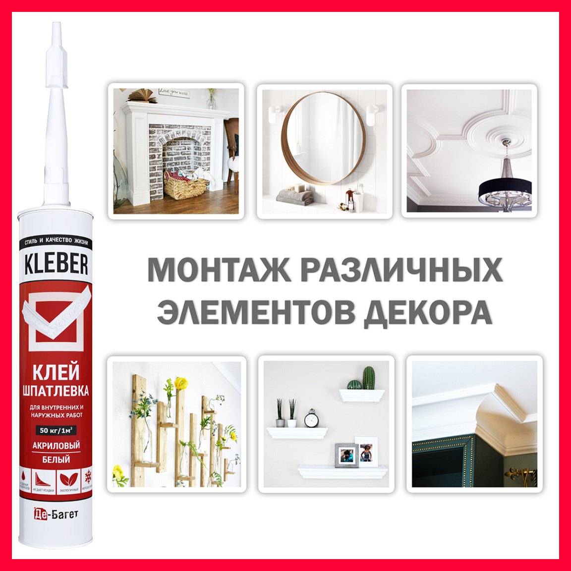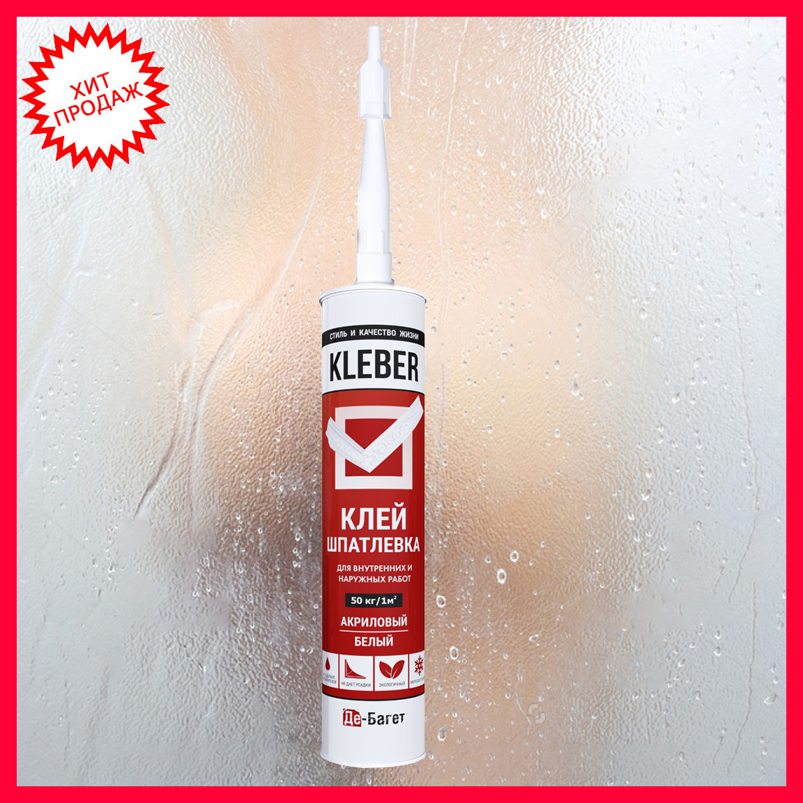 Клей-шпатлевка, Клей строительный KLEBER универсальный строительный белый водонепроницаемый жидкие гвозди 290 мл 0.45 кг, 1 шт.
