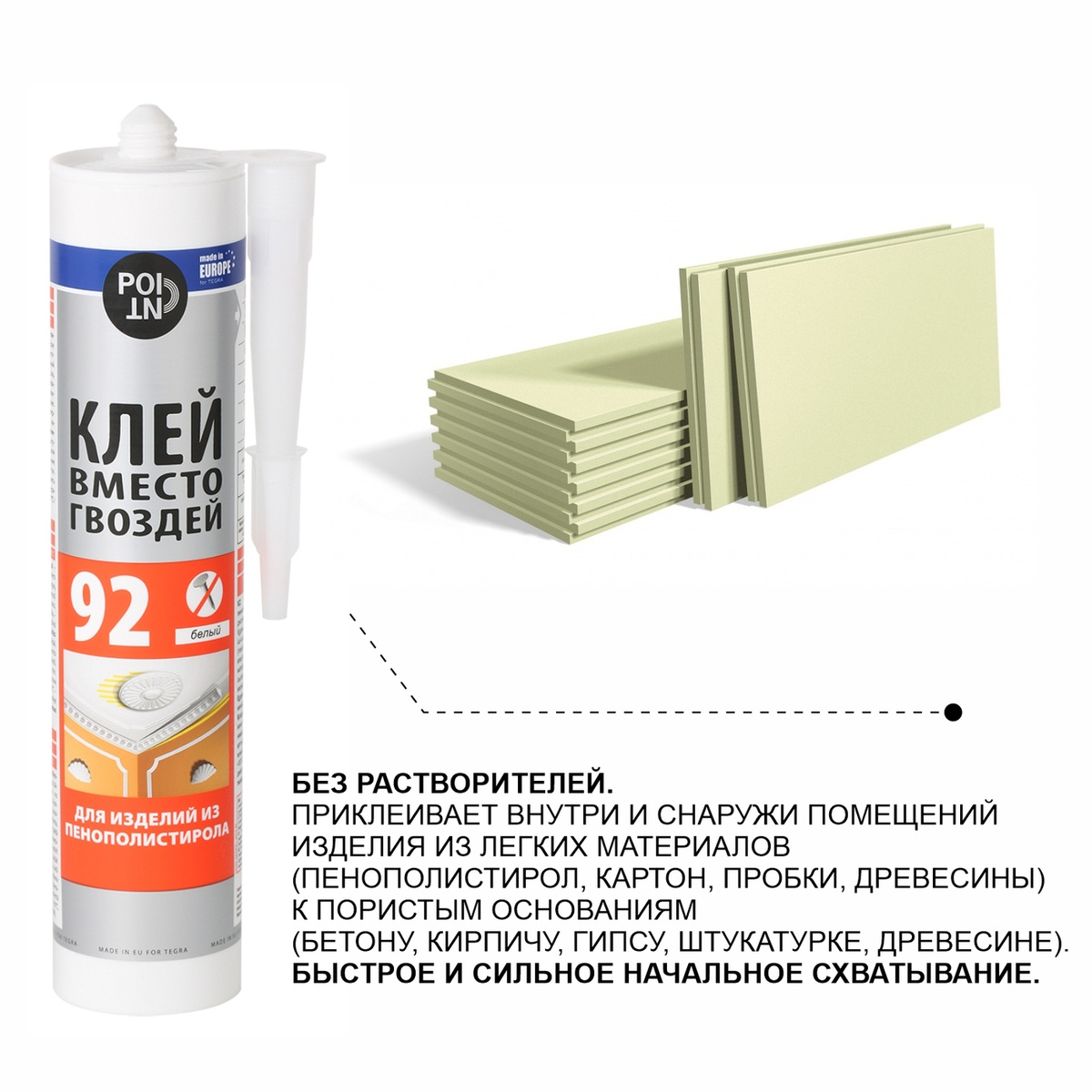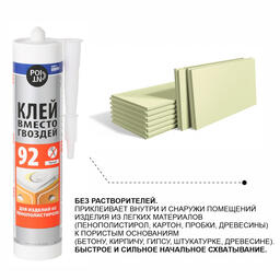 - Склеиваемые материалы Пенопласт, Гипсокартон, Картон, Керамика, Дерево, Пробка
