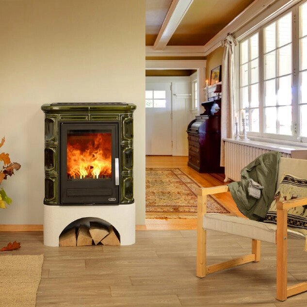 Керамическая печь MARINA KPI, с теплообменником, с допуском воздуха зеленый