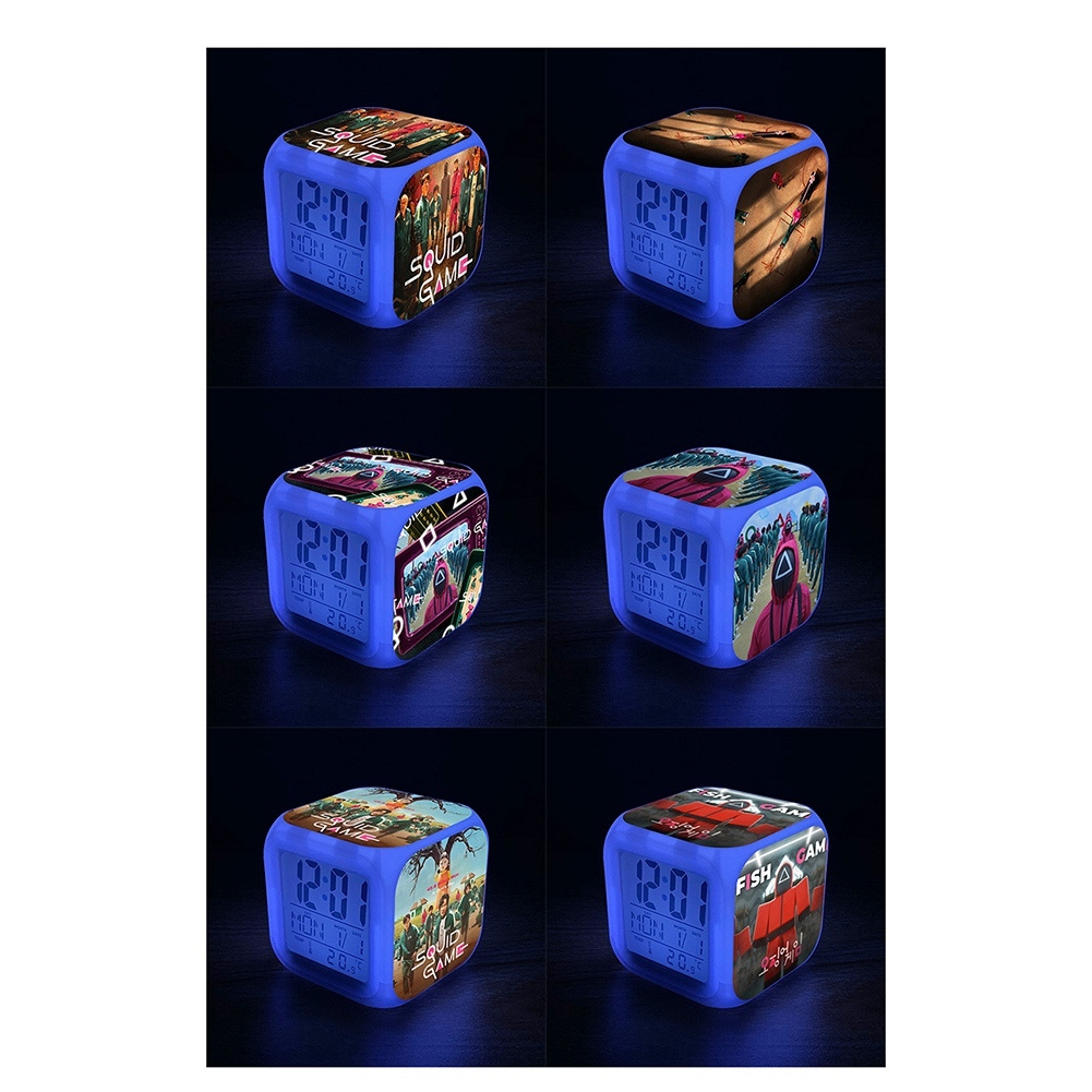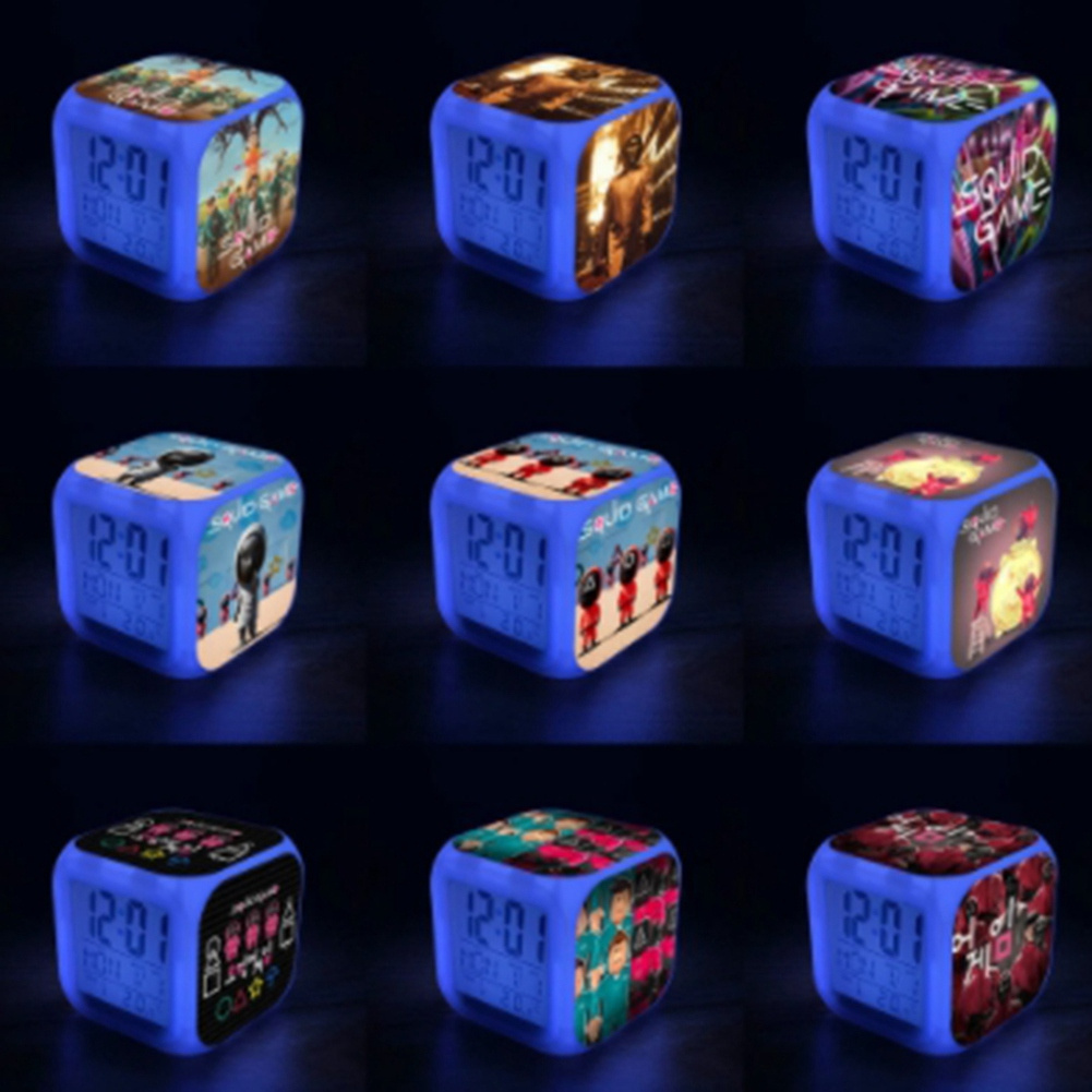 Будильник для игры в кальмаров светодиодные часы с ярким изменением цвета студенческий ночник подарок квадратные часы E SZ-OZ3J-I500184441A5