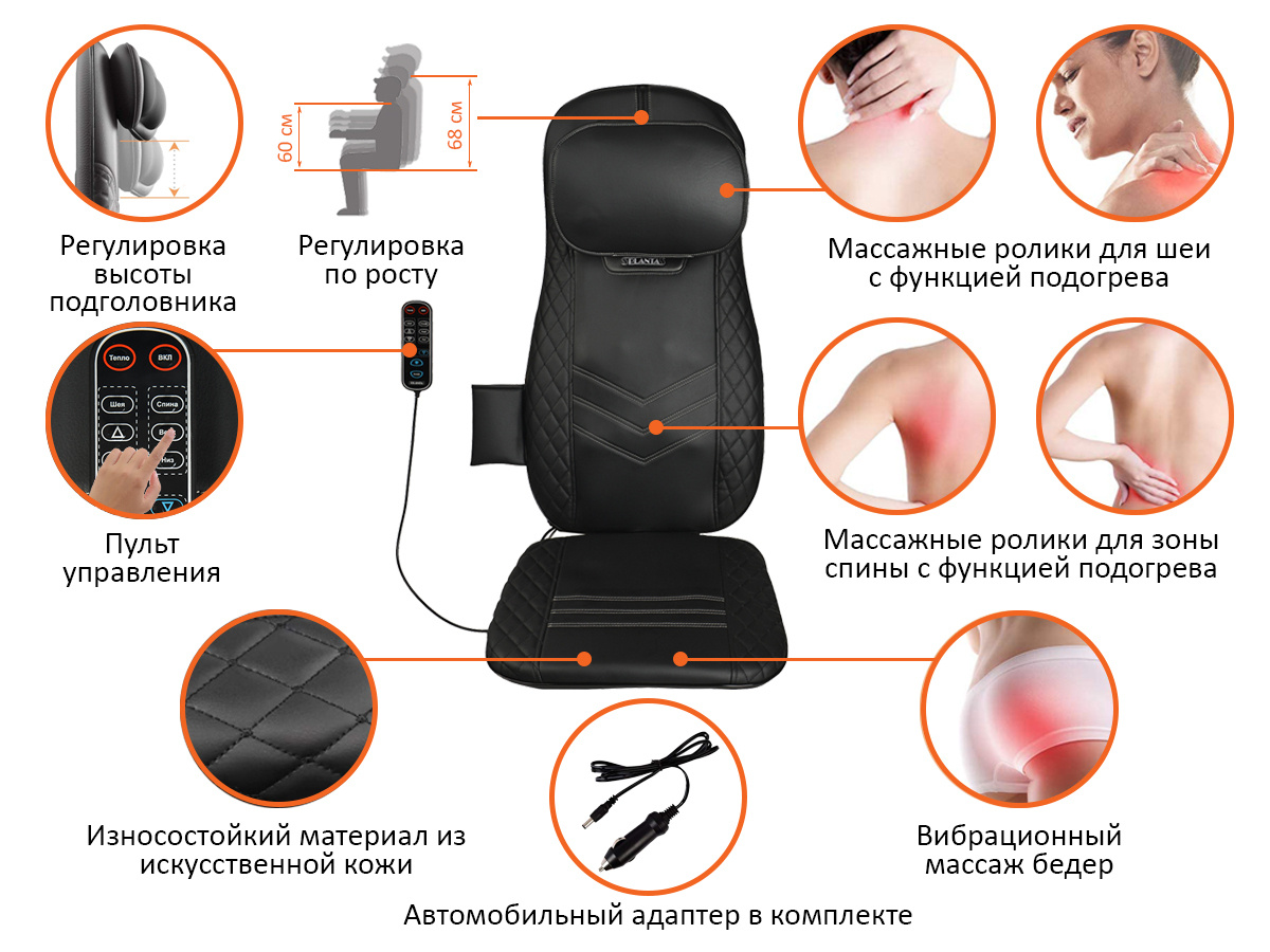 • Зоны массажа Поясница, Ягодицы, Тело, Шея, Плечи