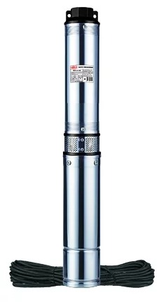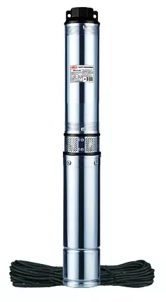 Скважинный, 51 л/мин, напор 74 м, мощность 550 Вт, макс. размер пропускаемых частиц 2 мм.