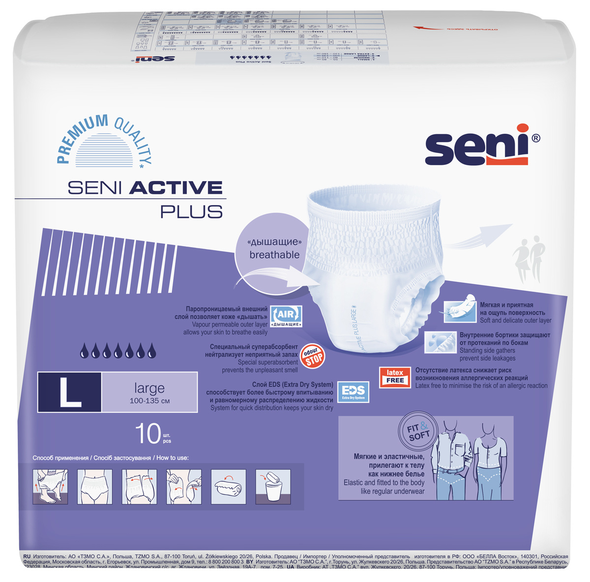 Трусы впитывающие для взрослых Seni ACTIVE PLUS large по 10шт. (100-135 см)