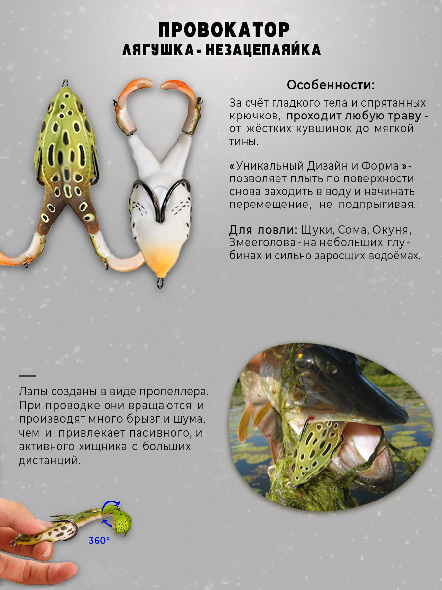 Лягушка провокатор незацепляйка 3 шт. приманка для хищника / приманка на окуня / приманки на сома / приманки на хищника / приманка на щуку / силиконовые лягушки