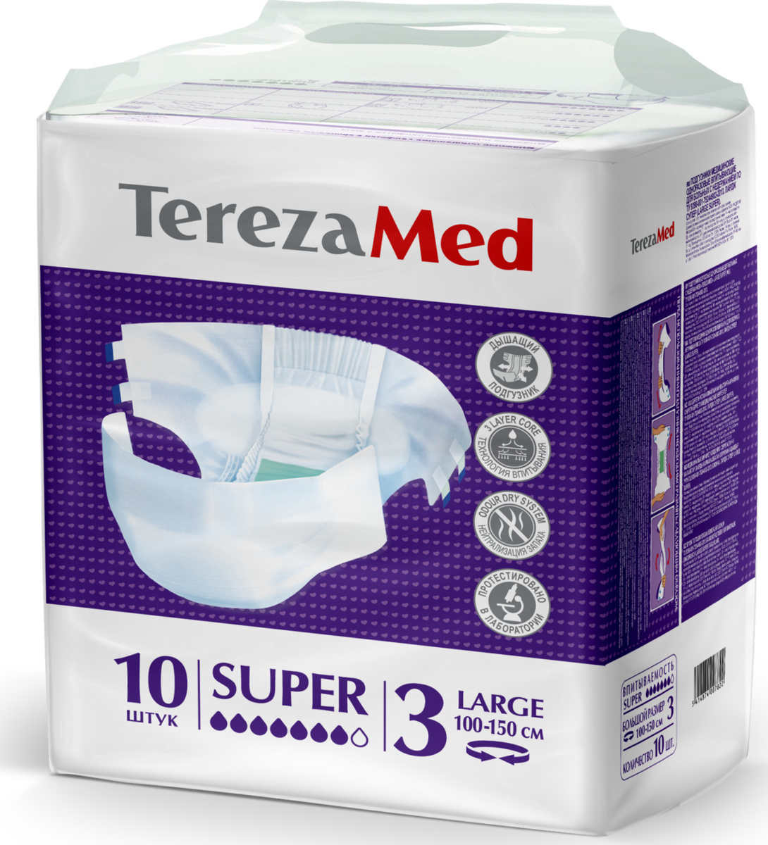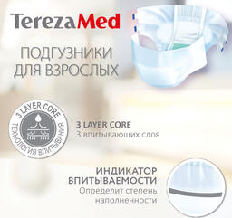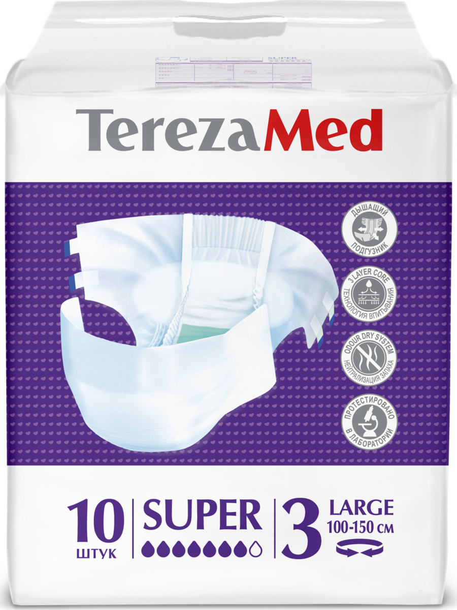 Подгузники для взрослых впитывающие на липучках TerezaMed Super Large №3, одноразовые, 10 шт