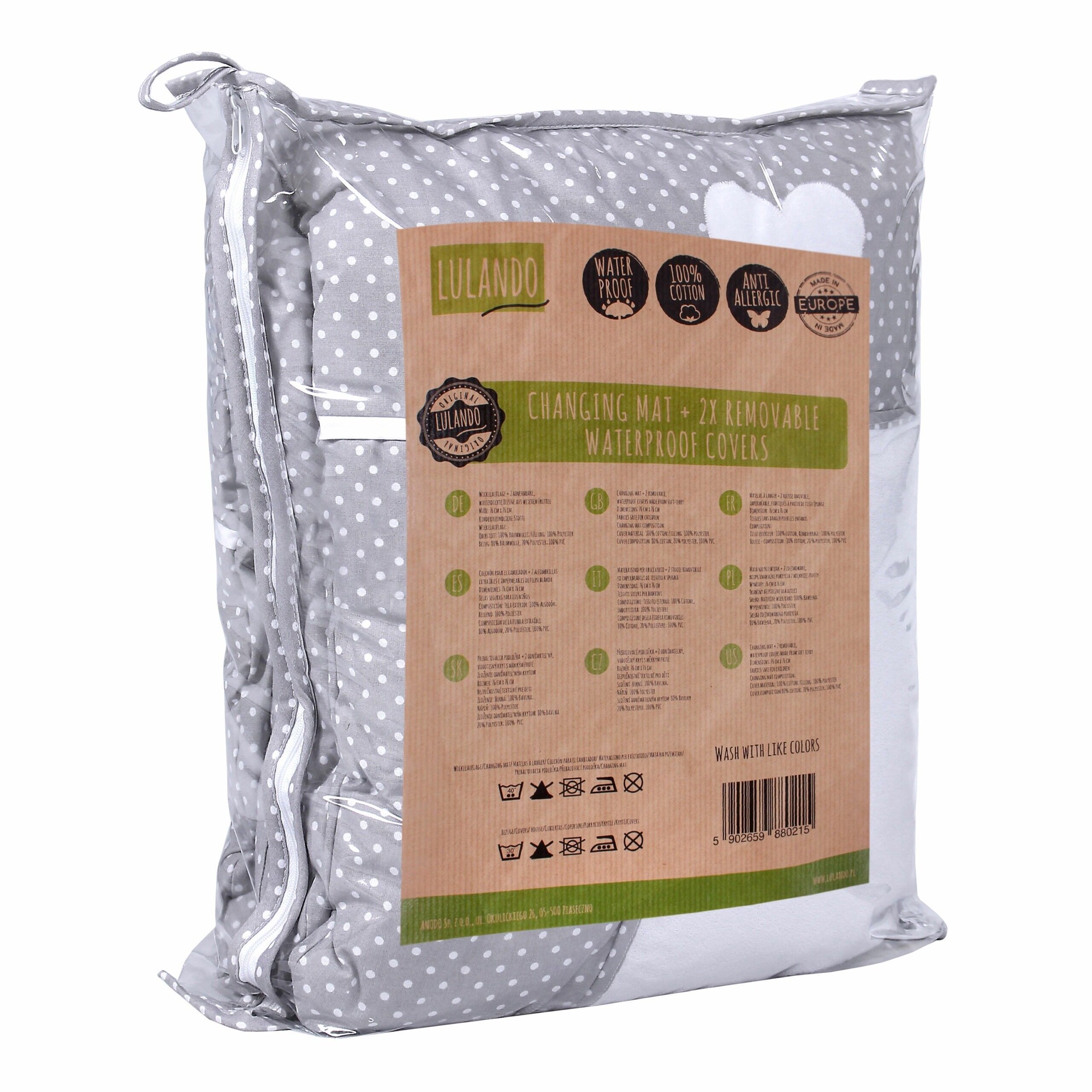 Пеленальный матрас Lulando Dots/Heart, 75 см x 85 см, белый/серый