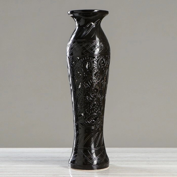 Ваза напольная "Анита", резка, чёрная, керамика, 67 см, микс
