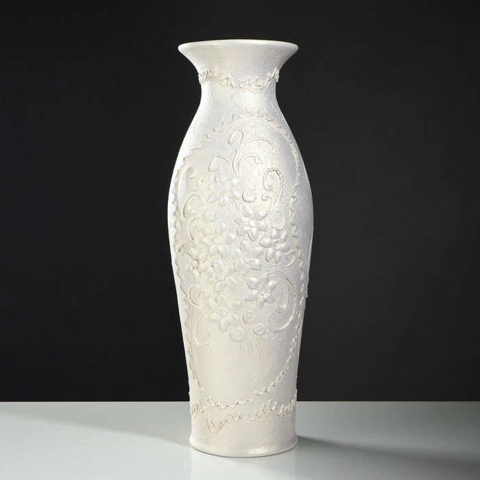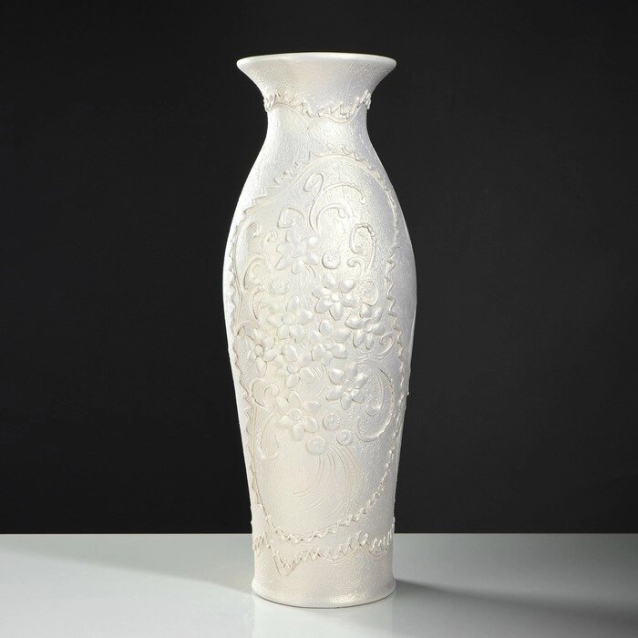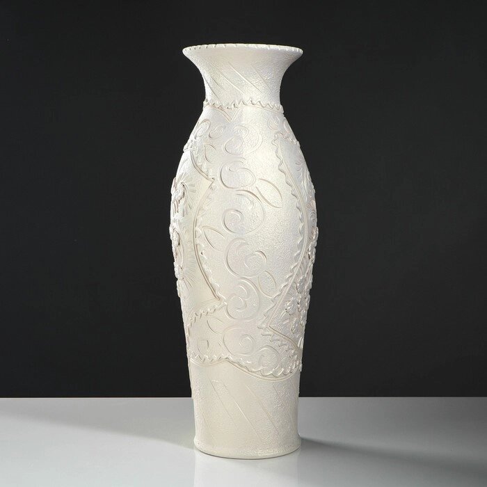 Ваза керамика напольная "Эллада", декор лепкой, белый цвет, 64 см, микс