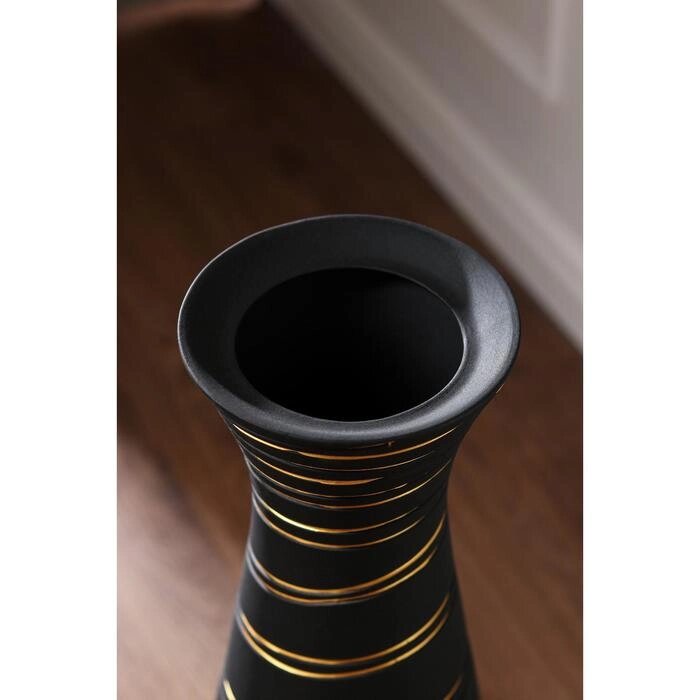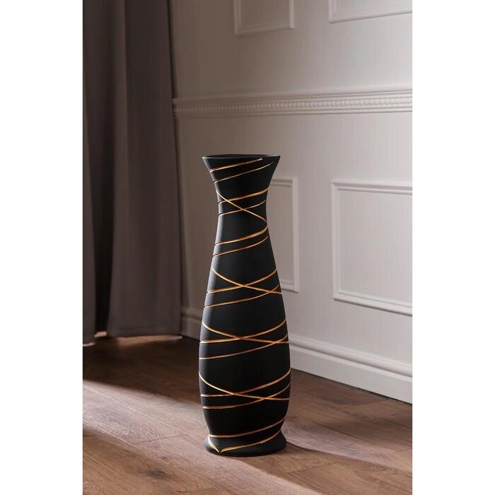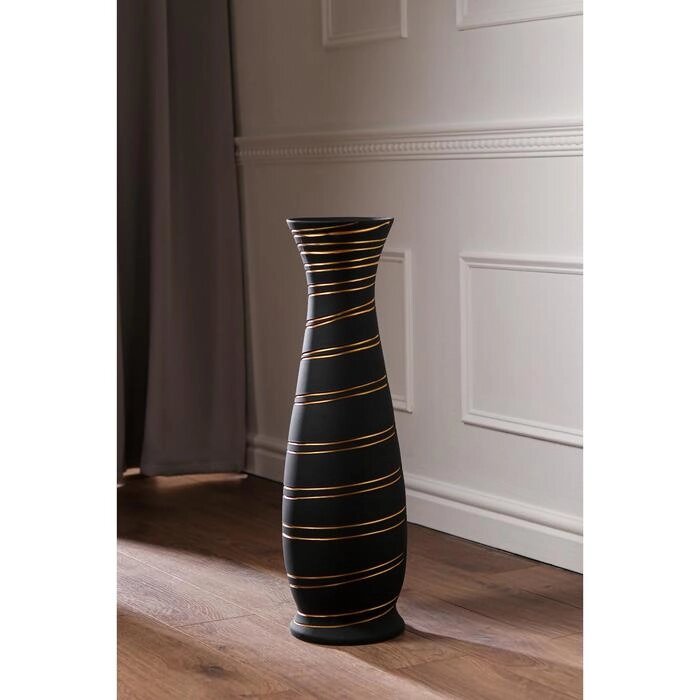 Ваза керамика напольная "Глория", серпантин, роспись золотистая, цвет черный, 68 см