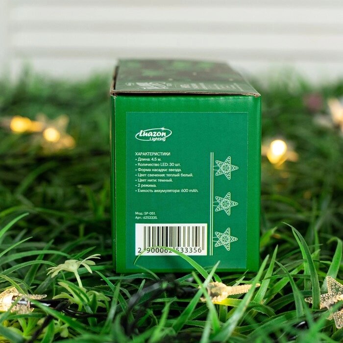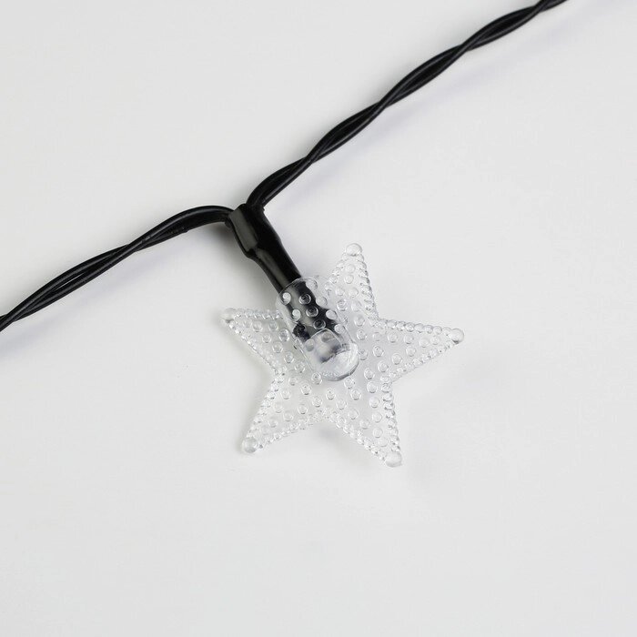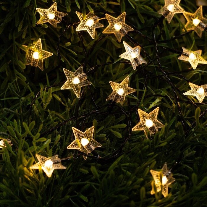 Гирлянда "Нить" 4.5 м с насадками "Звёзды", IP44, тёмная нить, 30 LED, свечение тёплое белое2 режима, солнечная батарея