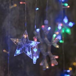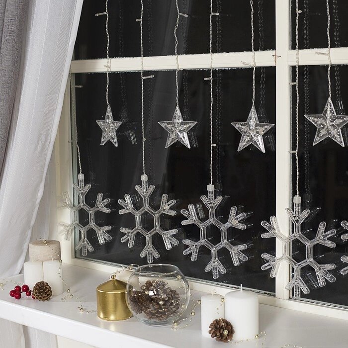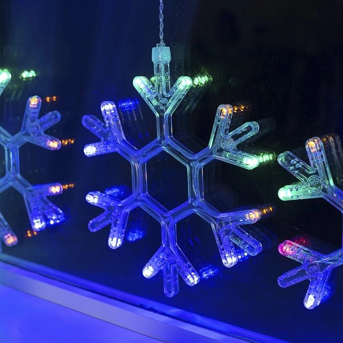 Гирлянда "Бахрома" 2.4 х 0.9 м с насадками "Снежинки", IP20, прозрачная нить, 150 LED, свечение мульти, 8 режимов, 220 В
