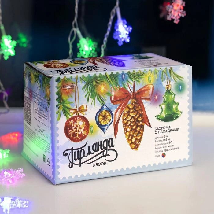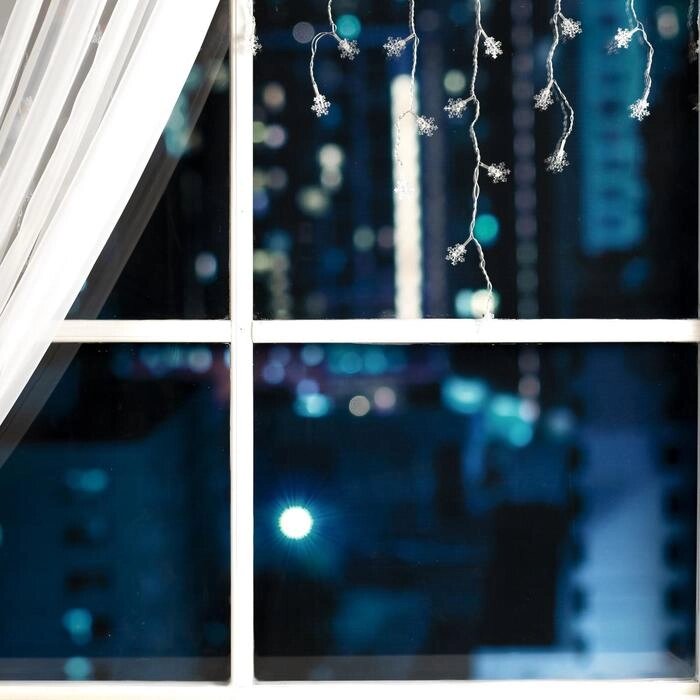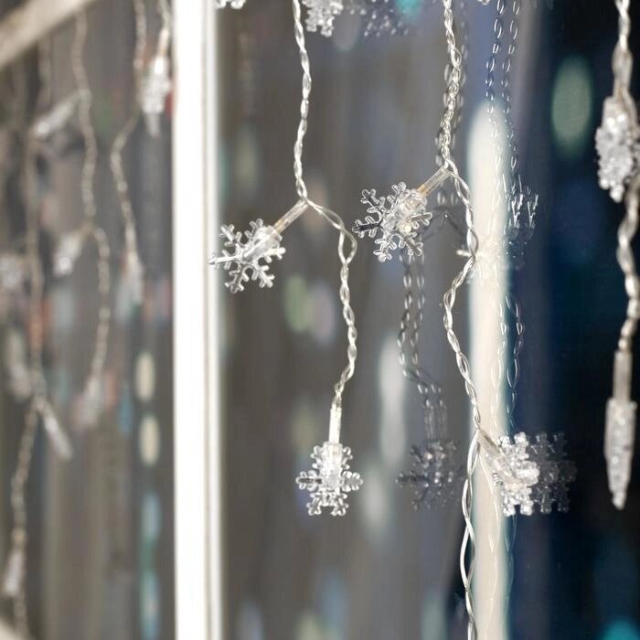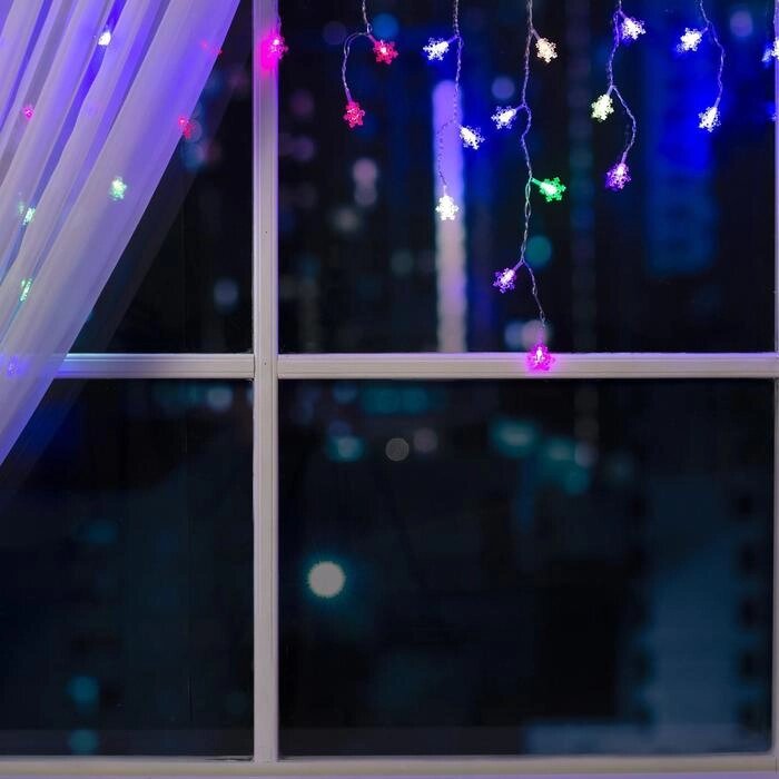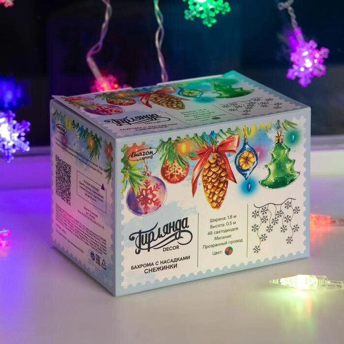 Гирлянда "Бахрома" 1.8 х 0.5 м с насадками "Снежинки", IP20, прозрачная нить, 48 LED, свечение RG/RB, мигание, 220 В