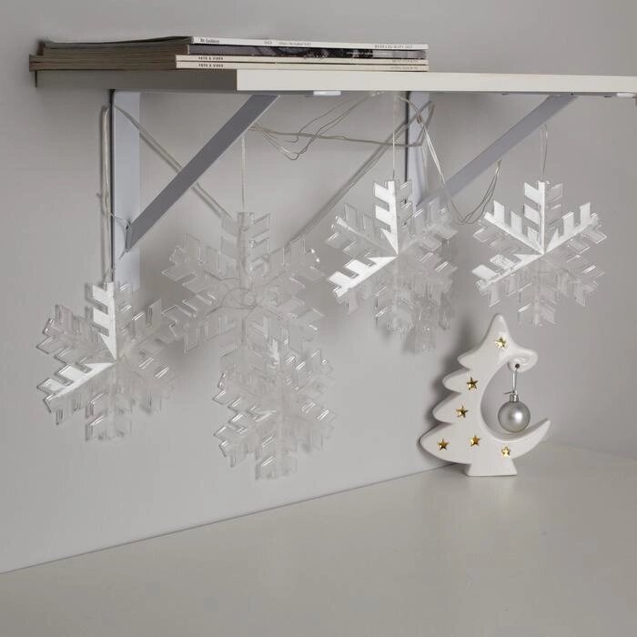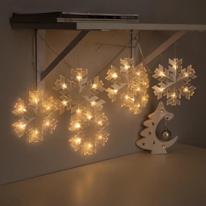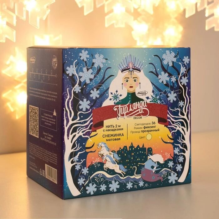 Гирлянда "Нить" 2 м с насадками "Снежинка матовая", IP20, прозрачная нить, 36 LED, свечение тёплое белое, фиксинг, 220 В
