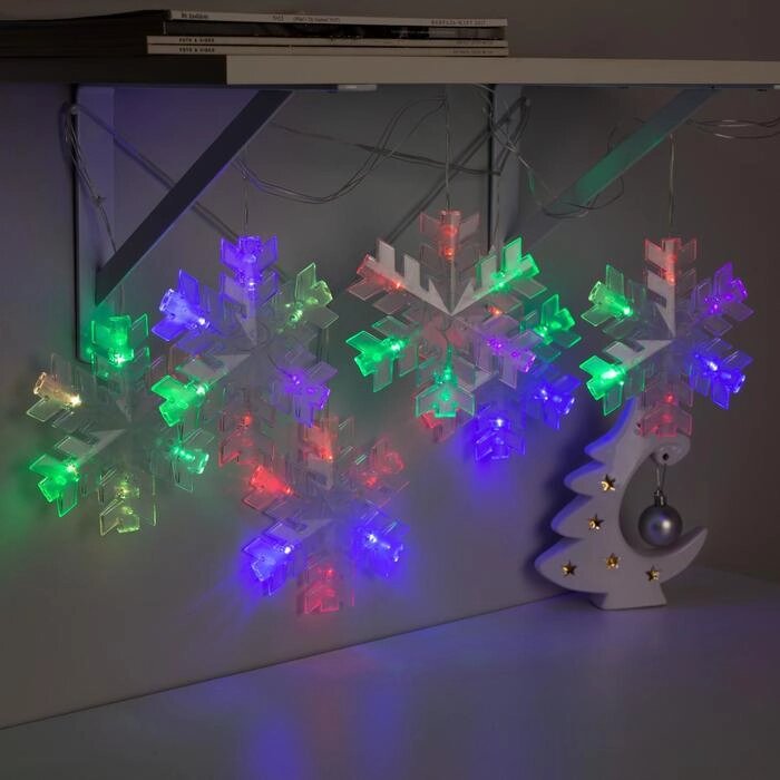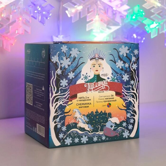 Гирлянда "Нить" 2 м с насадками "Снежинка матовая", IP20, прозрачная нить, 36 LED, свечение RG/RB, мигание, 220 В