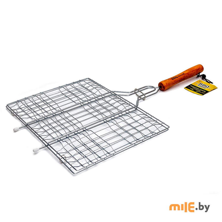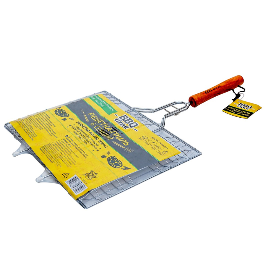 Решетка-гриль средняя 6 секций 31х24 см Royal Grill 80-018 используется для приготовления мясных стейков, ребрышек и т.д. Подходит как для гриля, так и для мангала. Специальная конструкция надежно и аккуратно удерживает продукты во время готовки. Деревянная ручка не нагревается и не скользит.