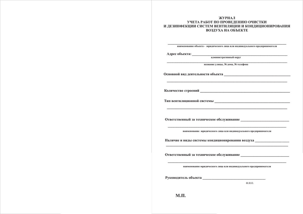 Журнал учета работ по проведению очистки и дезинфекции систем вентиляции и кондиционирования воздуха на объекте. Сити Бланк 60 страниц