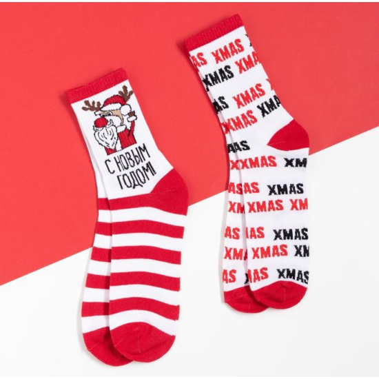 Набор носков (2 пары) KAFTAN "С Новым Годом!" мужские, цвет белый, размер 41-44 6969409