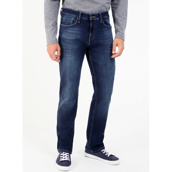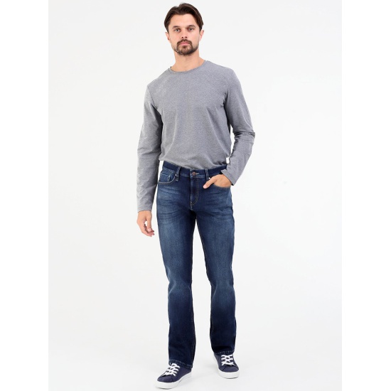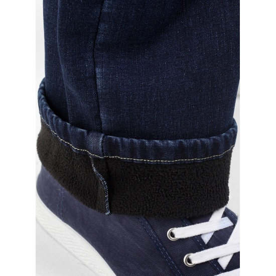 Мужские классические утепленные джинсы с пятью карманами. Посадка Slim fit (облегающие по бедру), средняя высота талии. Застежка на молнии. Немного зауженные к низу. Выполнены из слабоэластичной утепленной ткани Blue denim comfort stretch, к изнаночной ткани прикреплена дополнительная трикотажная ткань (флис) с мягким, шелковистым и приятным на ощупь ворсом. Средняя стирка с потёртостями и "усами" спереди и потёртостями сзади.Особенности:
