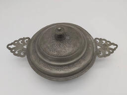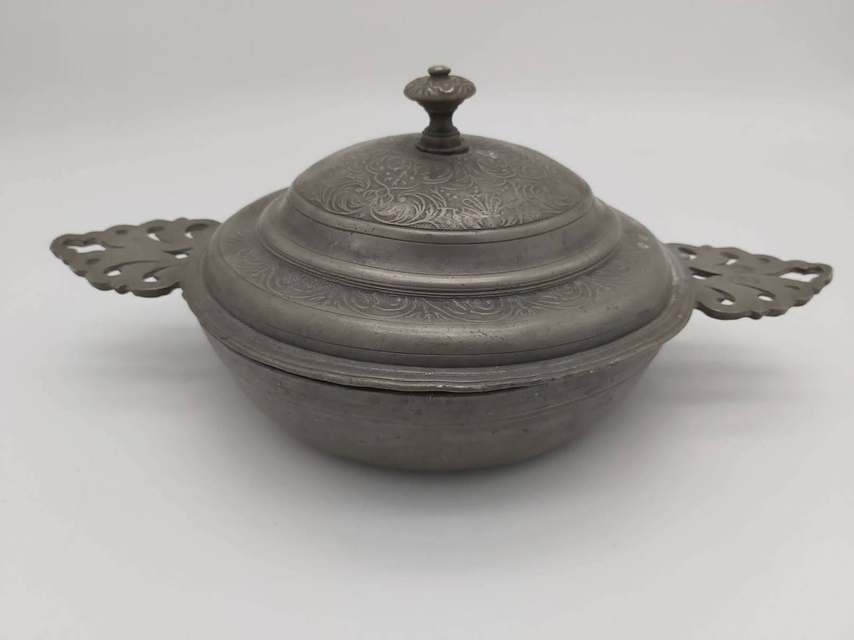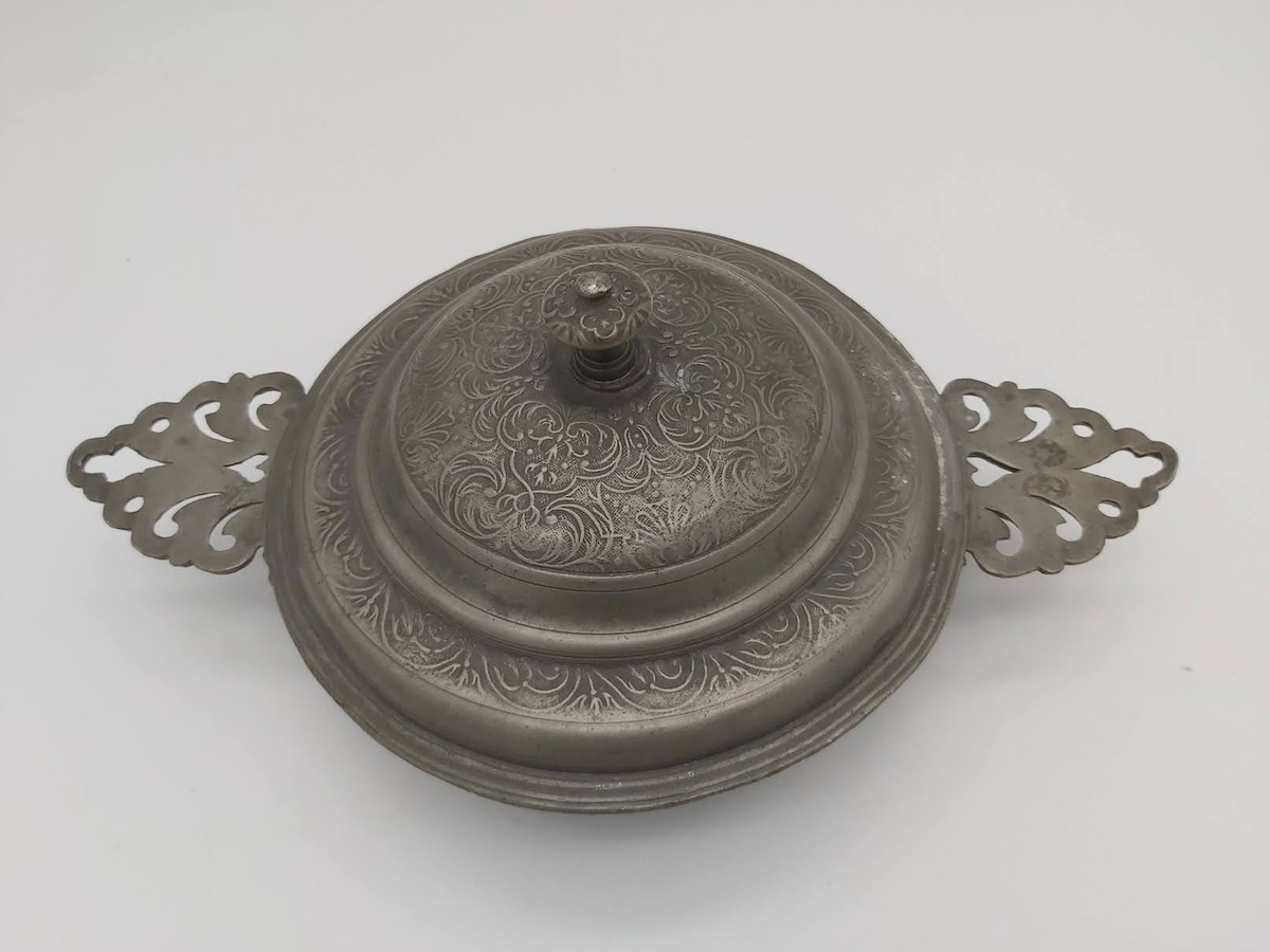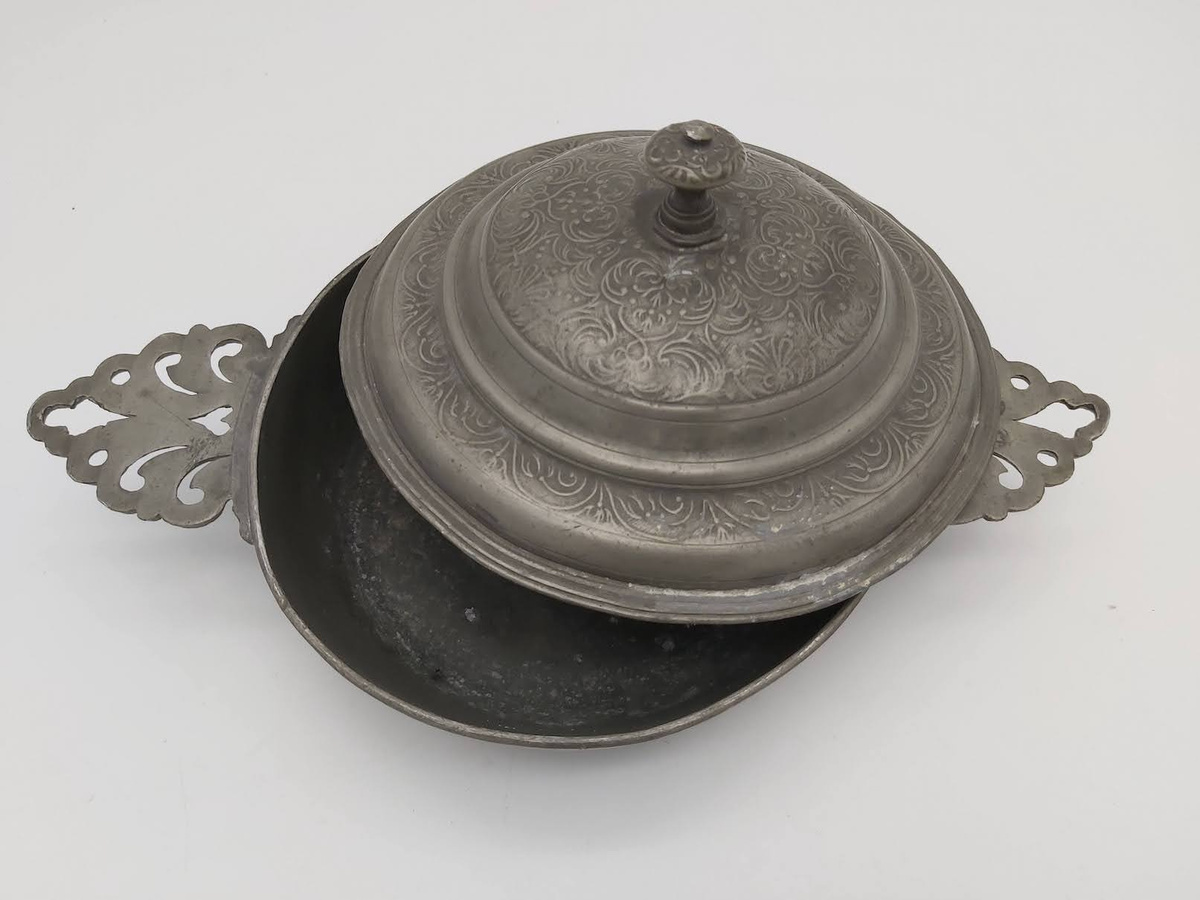 Тарелка под горячее с крышкой (тюринница). Олово. Клейма отсутствуют. Франция, 1-я пол.20в.