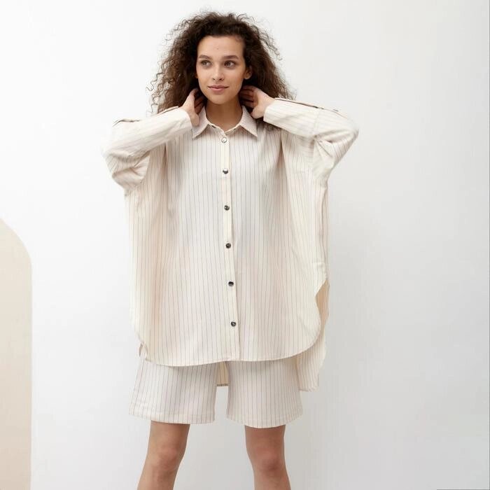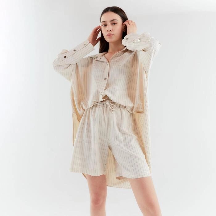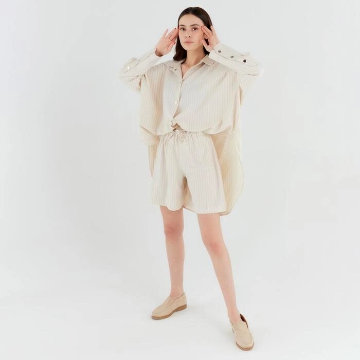 Комплект женский (рубашка, шорты) MINAKU: Casual Collection цвет бежевый, р-р 42