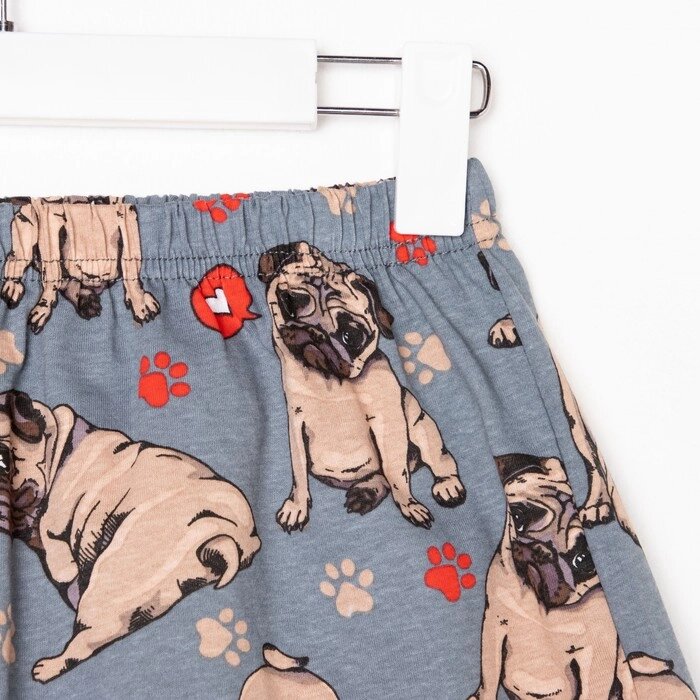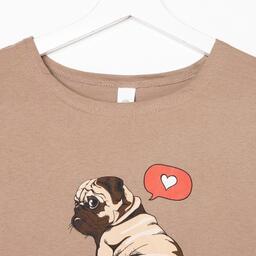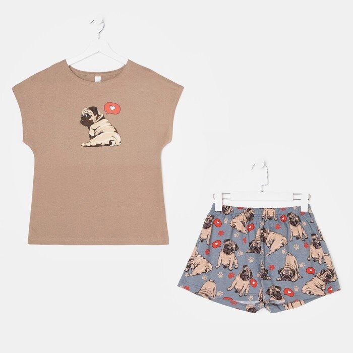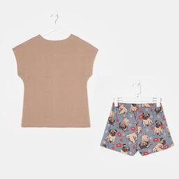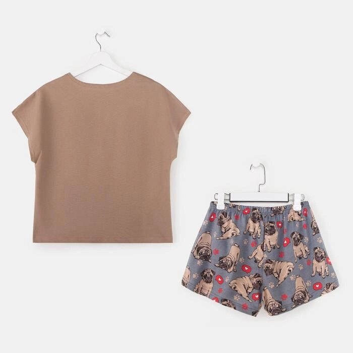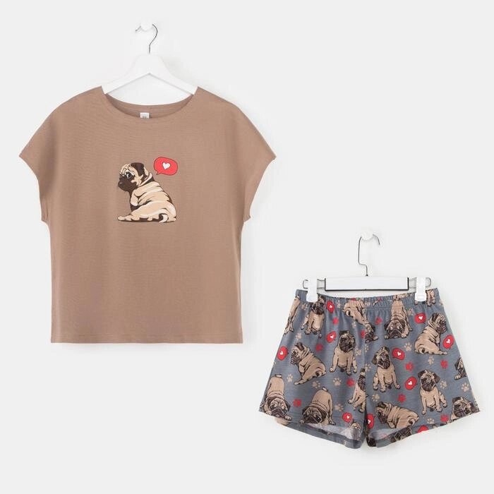 Комплект женский (футболка, шорты) цвет бежевый/принт мопс, размер 46