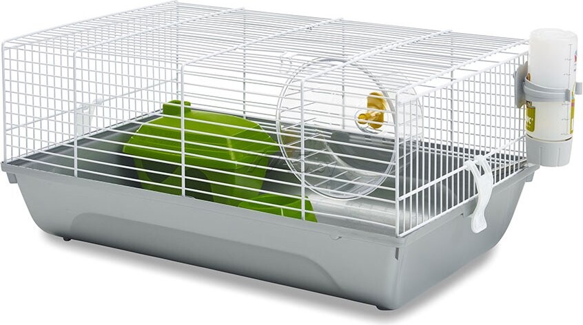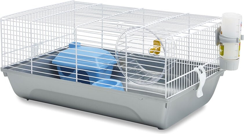 Клетка для грызунов SAVIC Martha 29,5x46,5x21 см (50060539) оборудована миской для еды и поилкой, колесом и домиком.