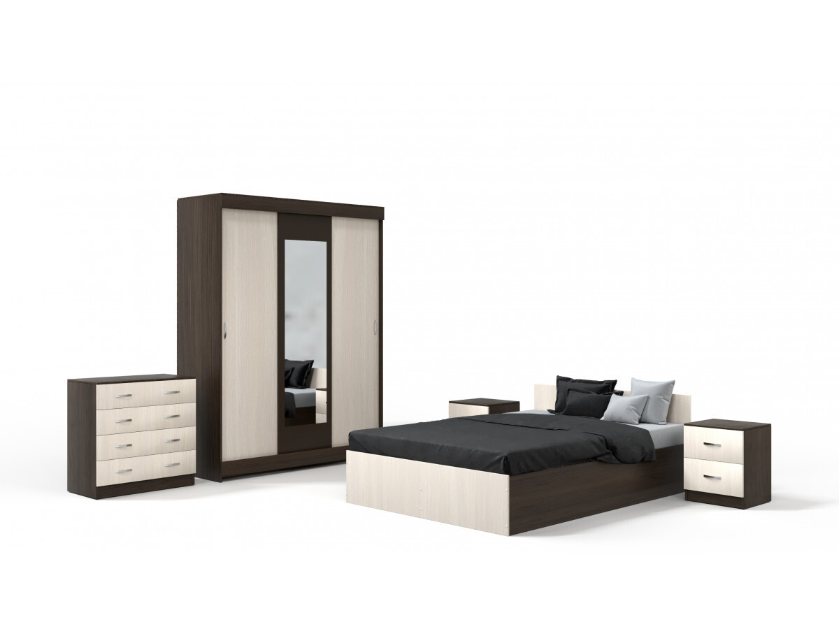- Состав комплекта Комод, Кровать, Шкаф для одежды, Тумба