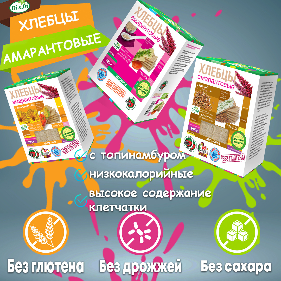 Хлебцы без глютена амарантовые "Di&Di" 5 штук по 195г