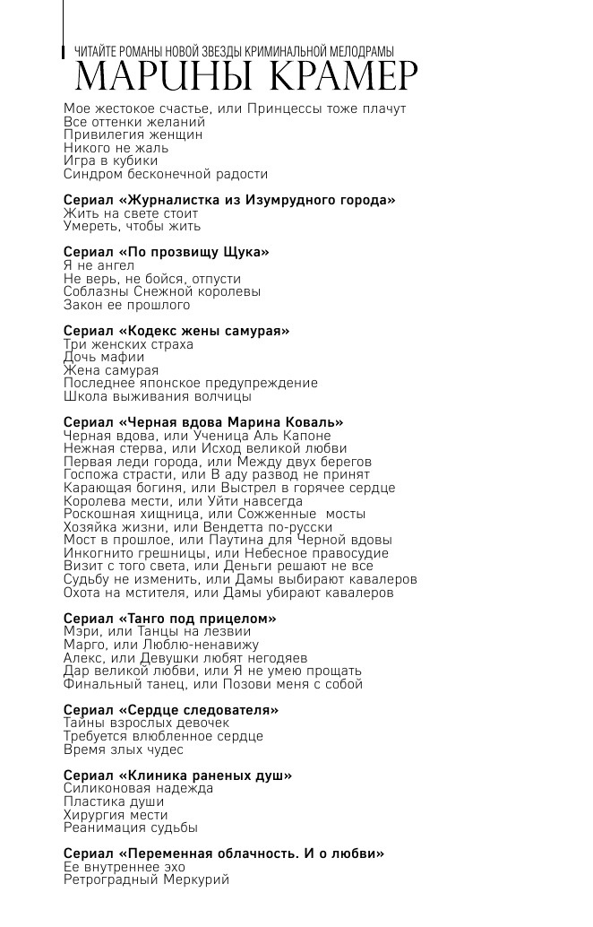 • Серия Закон сильной. Криминальное соло Марины Крамер (обложка)