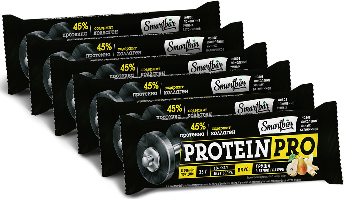 Батончик протеиновый SmartBar Protein Pro "Грушевый" с высоким содержанием протеина, 6 шт. х 35 г