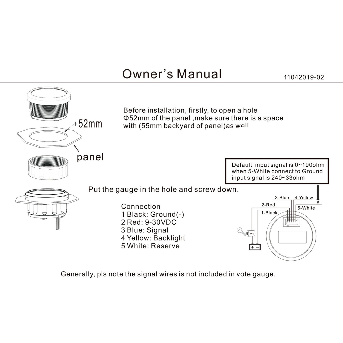 52 мм датчик уровня топлива 0-190OHM Переключаемый переключаемый 240-33OHM топливный маслом измеритель уровня масла Водонепроницаемый лодок Машины с тревоги белый