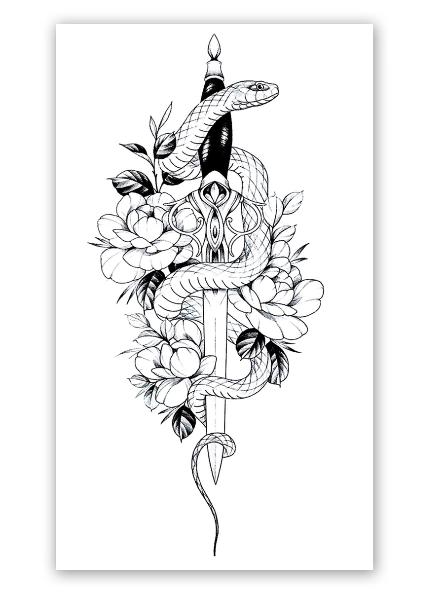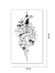 Boninio Tattoo / Временная переводная татуировка № 412 "Меч и змея" 21x10 см.