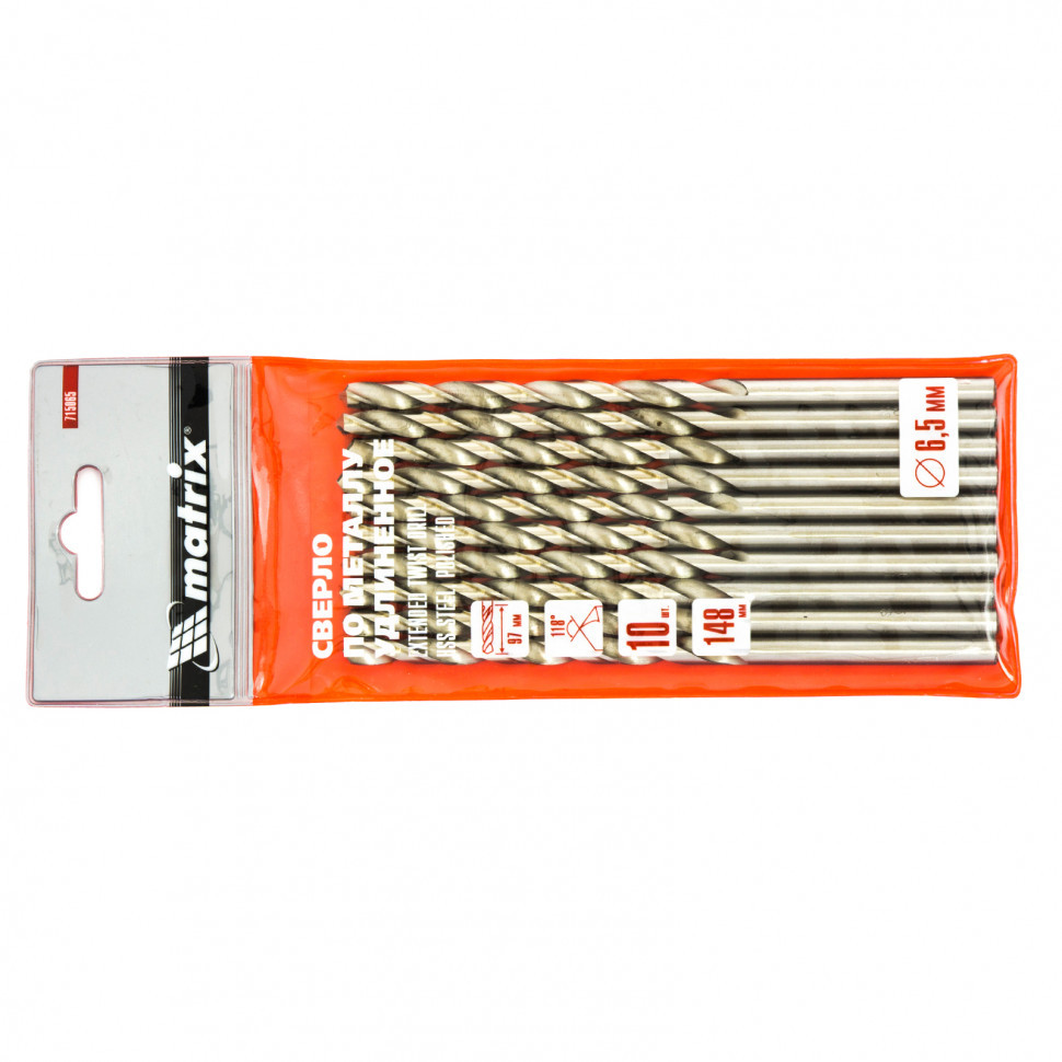 Сверло по металлу Matrix 715065 HSS 6,5х148 мм полированное удлиненное 10 штук