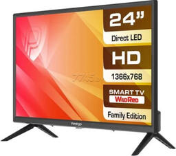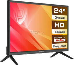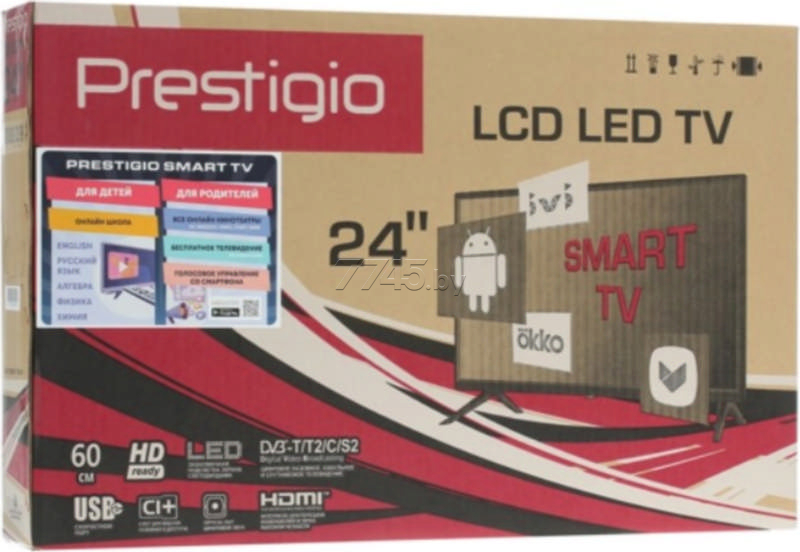 Телевизор PRESTIGIO PTV24SS06Z – телевизор с диагональю 24 дюйма, разрешением экрана HD и широкополосным звуком. Матрица VA-класса обеспечивает яркие цвета, высокую контрастность и детализацию при просмотре кино в темноте или при слабом освещении. Разрешение 1366х768 (HD), диагональ 24 дюйма и высокая контрастность 3000:1 позволяют получить максимум впечатлений от просмотра. Direct LED-подсветка с дополнительной полосой делает изображение максимально ярким и реалистичным. Идеально для домашних развлечений или презентаций в офисе. Телевизор 24” Top WR выполнен в лаконичном дизайне: с тонкими ножками и узкими рамками. Это делает его универсальным для любых интерьеров — классических и современных. Металлический корпус защищен от повреждений и сочетается с любой мебелью и декором.Сверхпроизводительный четырехъядерный процессор предназначен для обработки изображения без задержек, а также в телевизоре есть все самые современные тюнеры и технологии передачи данных: Wi-Fi, DVB-T, DVB-T2, DVB-C, DVB-S2. Телевизор можно подключить к LAN (локальная сеть), многоканальному звуку по оптической линии Toslink, кабельному и цифровому ТВ, домашнему кинотеатру Dolby Atmos и приставке. Есть также USB-разъемы и аудиовыходы для колонок и наушников.